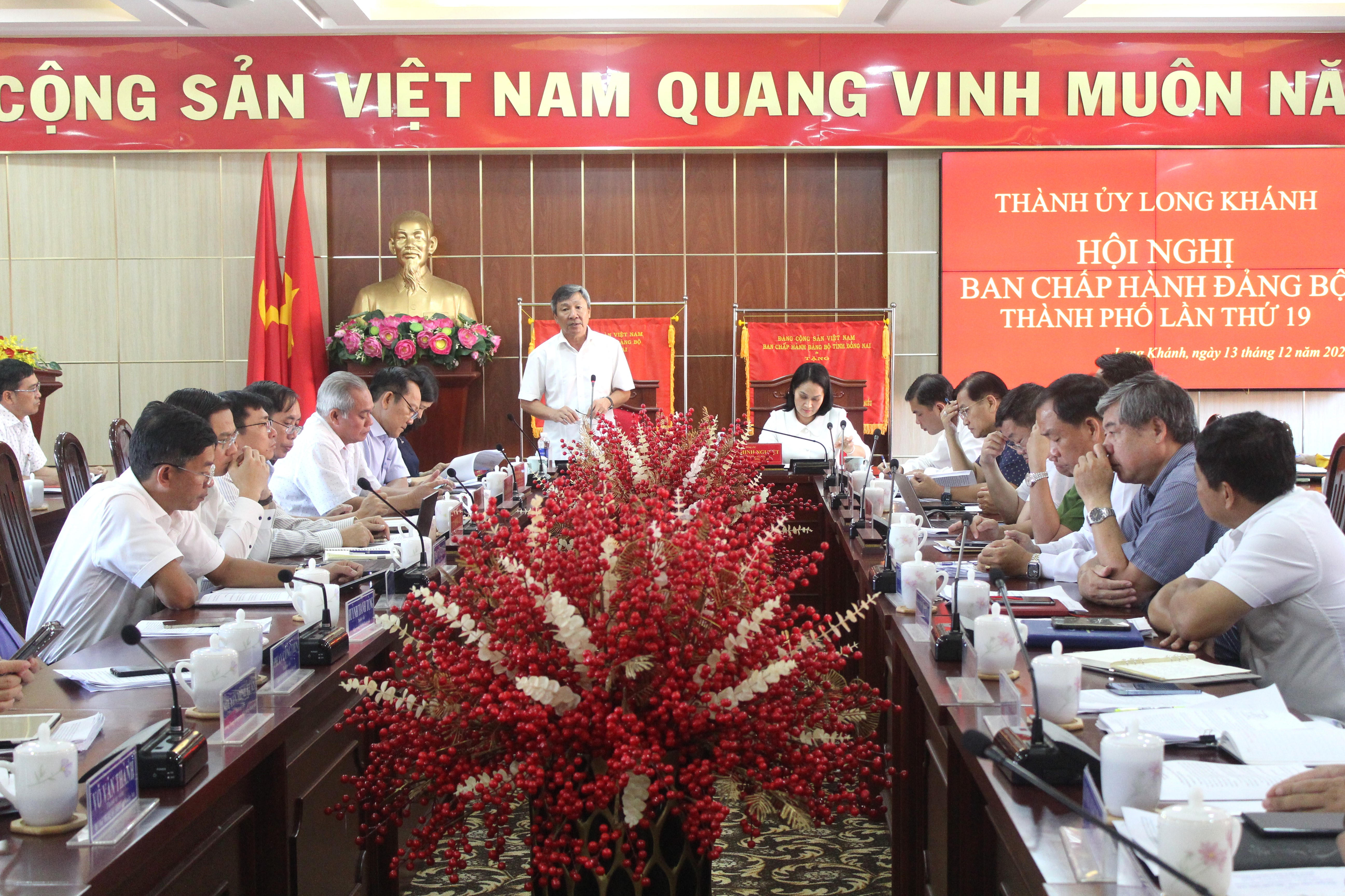 Phát biểu tại hội nghị, đồng chí Hồ Thanh Sơn - Phó Bí thư Thường trực Tỉnh ủy đề nghị trong thời gian tới, toàn Đảng bộ thành phố Long Khánh cần tập trung nỗ lực cho năm cuối nhiệm kỳ 2020-2025, rà soát nhiệm vụ, mục tiêu trọng yếu để quyết tâm thực hiện vượt trong năm 2024. Đổi mới phương thức lãnh đạo bằng cách cá thể hóa trách nhiệm cho từng tổ chức, từng cá nhân để xác định trách nhiệm của mình. Đồng chí nhấn mạnh, Ban Thường vụ Thành ủy Long Khánh lãnh đạo UBND, các ngành gắn chặt công tác quy hoạch không để sơ sót xảy ra, sớm đẩy nhanh quy hoạch phân khu để thu hút đầu tư, tạo điều cho dân xây dựng nhà. Kỷ niệm 50 giải phóng miền Nam, thống nhất đất nước (30/4/2025), các cấp ủy xây dựng kế hoạch cụ thể tạo điều kiện giúp đỡ cho gia đình chính sách, người có công với cách mạng có mức sống cao hơn mức trung bình. Công tác cán bộ sớm kiện toàn, đảm bảo đúng quy định, rà soát bồi dưỡng đào tạo cán bộ đủ chuẩn. Tập trung đảm bảo an ninh chính trị, giải quyết tin báo tố giác tội phạm. Tổ chức thăm hỏi các tổ chức tôn giáo nhân dịp lễ lớn, quan tâm chăm lo cho người nghèo đảm bảo ăn Tết vui vẻ, tiết kiệm. Đảm bảo tình hình an ninh trật tự trong các ngày lễ lớn.