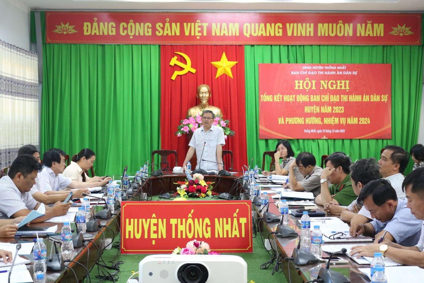 Sáng 22/12/2023, Ban chỉ đạo Thi hành án dân sự (THADS) huyện Thống Nhất tổ chức Hội nghị tổng kết hoạt động năm 2023 và đề ra phương hướng, nhiệm vụ năm 2024.