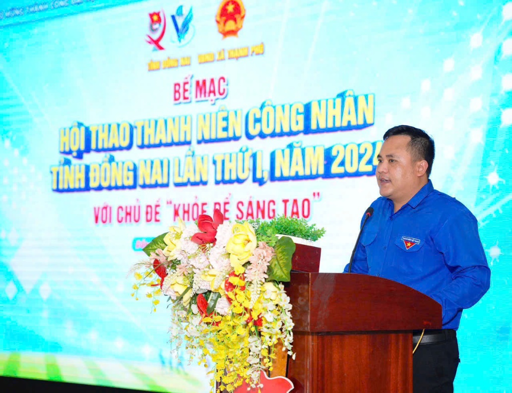 Anh Nguyễn Hiếu Trung, Phó Bí thư Tỉnh đoàn phát biểu Bế mạc, tổng kết Hội thao TNCN tỉnh Đồng Nai lần thứ I năm 2024