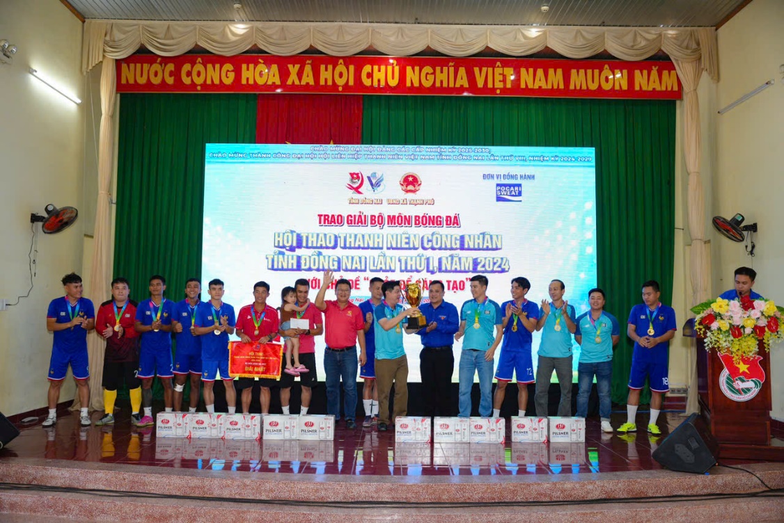 BTC Hội thao trao Cúp vô địch và HCV tại Bộ môn Bóng đá nam trong khuôn khổ Hội thao TNCT tỉnh Đồng Nai lần thứ I năm 2024 cho Đội Công ty TNHH Changshin Việt Nam