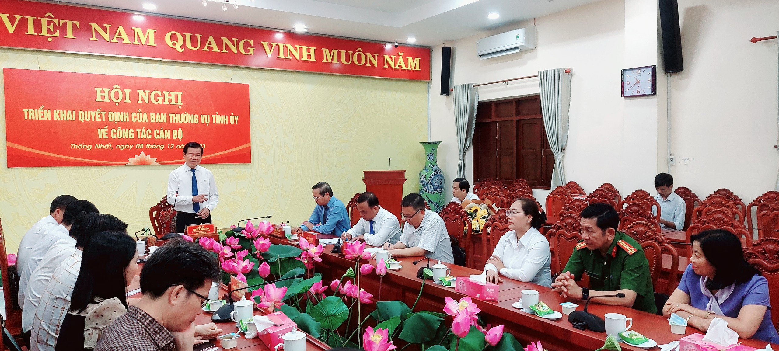 Tại hội nghị, đồng chí Đào Văn Phước, UVTVTU, Trưởng Ban Tổ chức Tỉnh ủy đã công bố quyết định của Ban Thường vụ Tỉnh ủy về điều động đồng chí Nguyễn Hữu Định, TUV, Bí thư Huyện ủy Thống Nhất đến công tác tại UBND tỉnh, kể từ ngày 05/12. Đồng chí Nguyễn Hữu Định đã được UBND tỉnh tiếp nhận và bổ nhiệm giữ chức Giám đốc Sở Nội vụ kể từ ngày 05/12/2023.