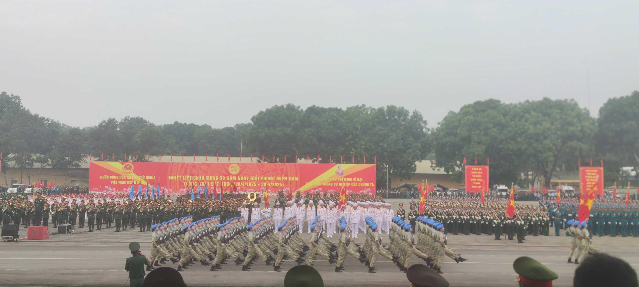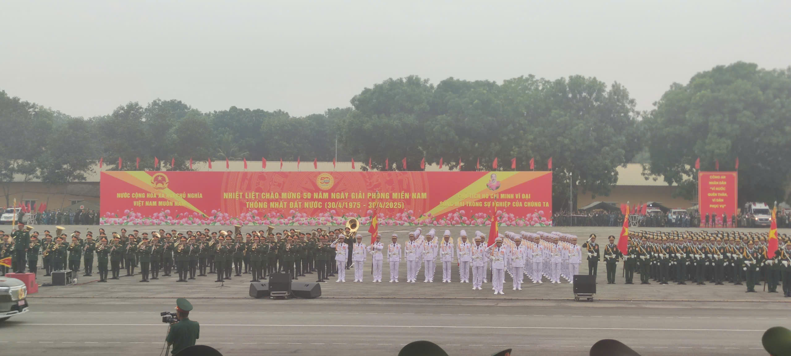 Dự chỉ đạo kiểm tra và động viên các lực lượng diễu binh, diễu hành có các đồng chí: Đại tướng Nguyễn Tân Cương, UVTW Đảng, Tổng Tham mưu trưởng Quân đội nhân dân (QĐND) Việt Nam, Thứ trưởng Bộ Quốc phòng; Thượng tướng Nguyễn Văn Nghĩa, Phó Tổng Tham mưu trưởng QĐND Việt Nam, Trưởng tiểu ban diễu binh diễu hành, cùng các đại biểu Bộ Quốc phòng, Bộ Công an và các đồng chí lãnh đạo tỉnh Đồng Nai. Đồng chí Đại tướng Nguyễn Tân Cương, UVTW Đảng, Tổng Tham mưu trưởng QĐND Việt Nam phát biểu tại buổi Tổng hợp luyện: “Đợt diễu binh, diễu hành tại Lễ kỷ niệm 50 năm Ngày giải phóng miền Nam, thống nhất đất nước (30/4/1975) có ý nghĩa quan trọng; các lực lượng cần xác định rõ trách nhiệm và niềm vinh dự, tự hào khi được tham gia Lễ diễu binh, diễu hành. Vì vậy, yêu cầu các lực lượng tham gia luyện tập tiếp tục nêu cao tinh thần trách nhiệm, ý thức tổ chức kỷ luật; giữ vững tinh thần đoàn kết, hăng hái thi đua, quyết tâm cao nhất để hoàn thành xuất sắc nhiệm vụ được giao”.