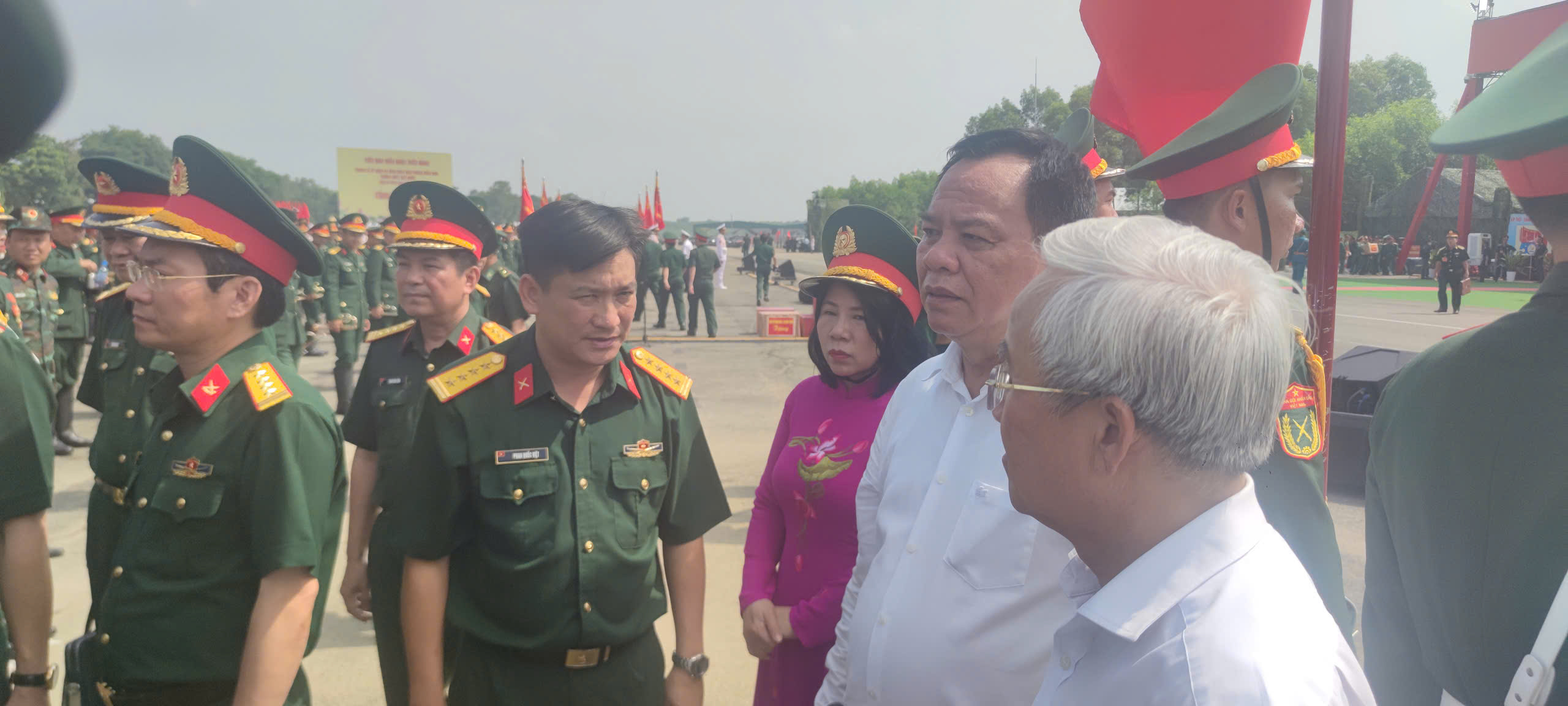 Trong bối cảnh thời tiết nắng nóng và điều kiện sinh hoạt còn nhiều khó khăn, vất vả, đồng chí Võ Tấn Đức - Phó Bí thư Tỉnh ủy, Chủ tịch UBND tỉnh thay mặt Tỉnh ủy, chính quyền và Nhân dân tỉnh Đồng Nai thể hiện tình cảm, sự quan tâm, khích lệ và động viên lực lượng tham gia nhiệm vụ diễu binh, diễu hành Lễ kỷ niệm 50 năm Ngày Giải phóng miền Nam, thống nhất đất nước. Các đồng chí trong đoàn công tác của tỉnh Đồng Nai cũng ân cần thăm hỏi sức khỏe và tình hình, kết quả luyện tập của các khối đang luyện tập tham gia diễu binh, diễu hành; đồng thời, biểu dương tinh thần tích cực, chủ động của các đơn vị trong bảo đảm huấn luyện, luyện tập đúng kế hoạch, đạt kết quả tốt. Đồng thời, Chủ tịch UBND tỉnh Đồng Nai nhấn mạnh, các lực lượng tham gia diễu binh diễu hành cần nêu cao tinh thần trách nhiệm trong quá trình huấn luyện và hợp luyện, nghiêm chỉnh chấp hành kỷ luật, tập trung cao độ, tích cực luyện tập để đạt kết quả cao nhất, hoàn thành mục tiêu đã đề ra.
