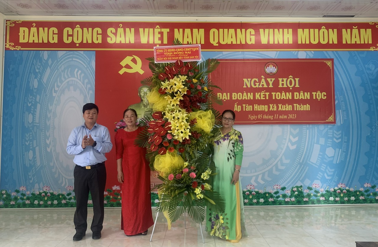 Sáng ngày 05/11/2023, đồng chí Vũ Đình Trung, Phó Chủ tịch Ủy ban MTTQ Việt Nam tỉnh thay mặt lãnh đạo tỉnh về dự Ngày hội đại đoàn kết toàn dân tộc tại ấp Tân Hưng (xã Xuân Thành, huyện Xuân Lộc). Tham dự có ông Nguyễn Đức Hóa, Phó Bí thư Thường trực Huyện ủy, Chủ tịch HĐND huyện Xuân Lộc; các đồng chí lãnh đạo huyện Xuân Lộc, xã Tân Thành, ấp Tân Hưng, cùng bà con Nhân dân trong ấp về chung vui cùng ngày hội.