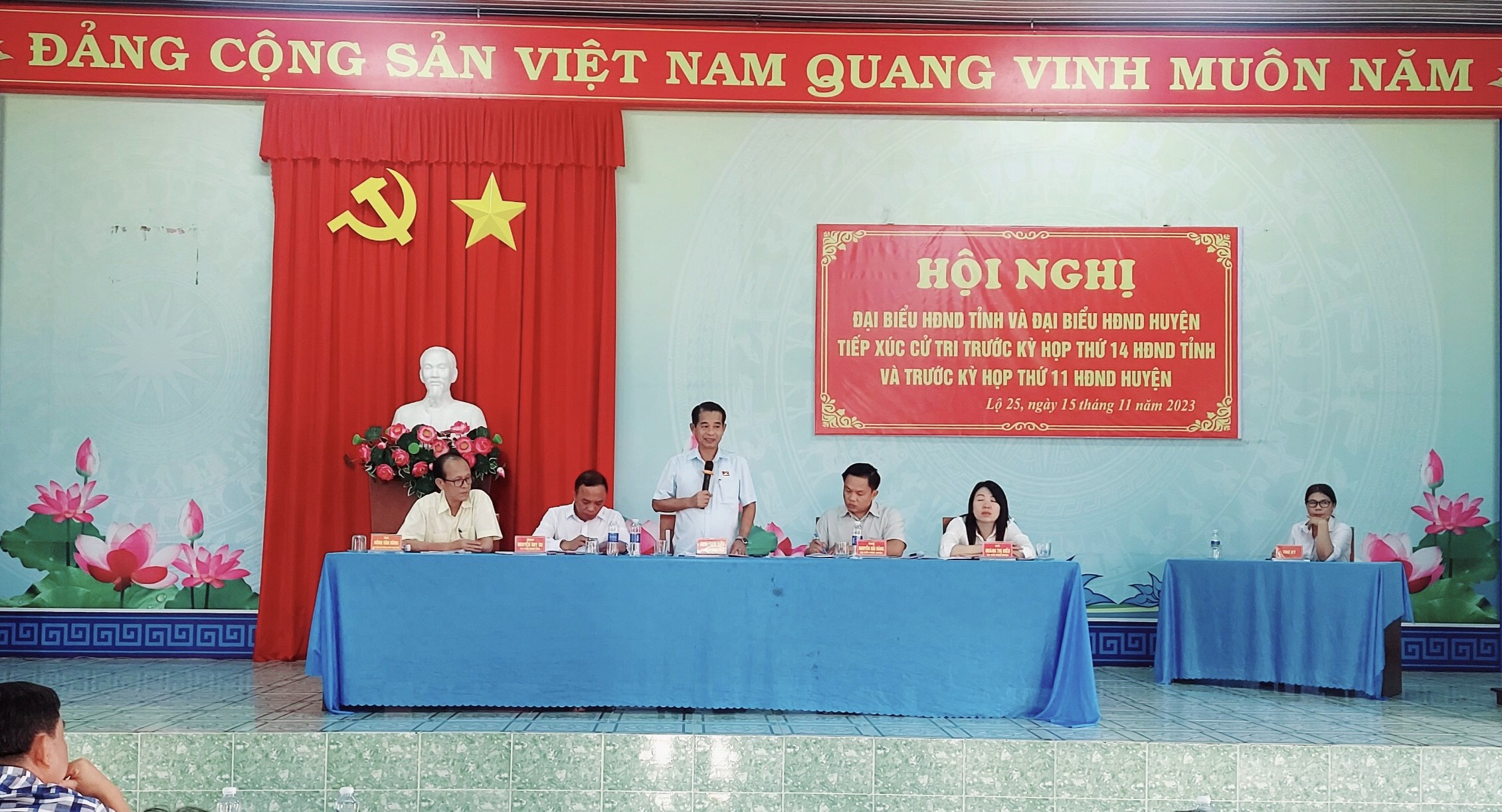 Tại buổi tiếp xúc, cử tri xã Lộ 25 kiến nghị, phản ánh một số ý kiến xoay quanh các vấn đề, như: sớm triển khai nâng cấp mở rộng tuyến đường tỉnh lộ 769 để đảm bảo an toàn giao thông; quy định về công tác cấp giấy chứng nhận quyền sử dụng đất còn bất cập; chất lượng một số tuyến đường giao thông nông thôn trên địa bàn xã không đảm bảo; mức đóng tiền mua BHYT còn cao, gây khó khăn cho người dân; một số đối tượng giả danh các công ty để lừa đảo bán hàng vẫn xảy ra; tình trạng rải tiền thật xuống đường để tiễn đưa người đã khuất gây phản cảm.