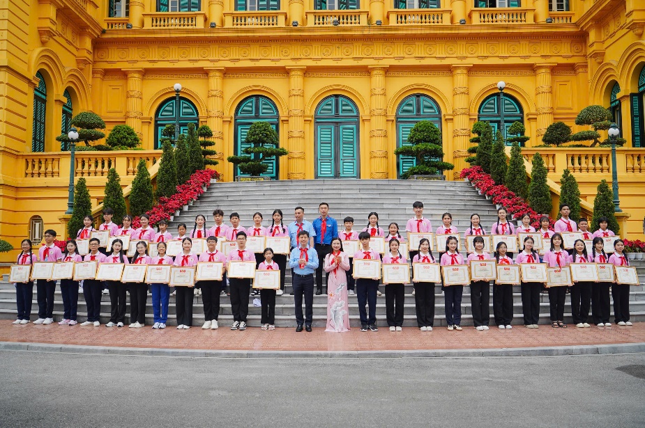 Các đại biểu Cháu ngoan Bác Hồ nhận giải Thưởng Kim Đồng năm học 2024-2025 tại Phủ Chủ tịch