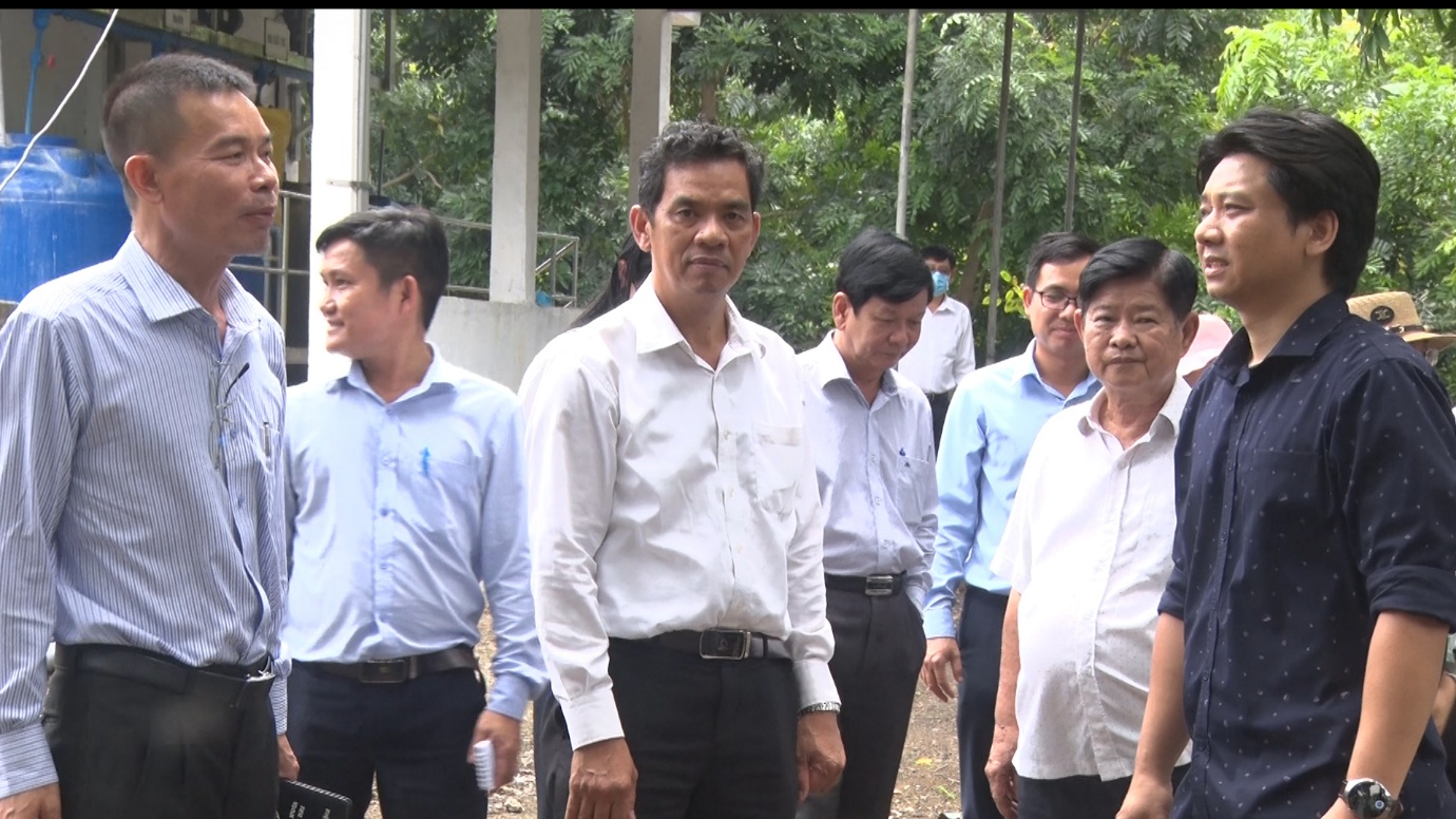Đoàn công tác kiểm tra khu xử lý nước thải tại Trang trại nuôi bò thịt Công ty TNHH chăn nuôi Đồng Phát, ấp Cọ Dầu 2, xã Xuân Đông