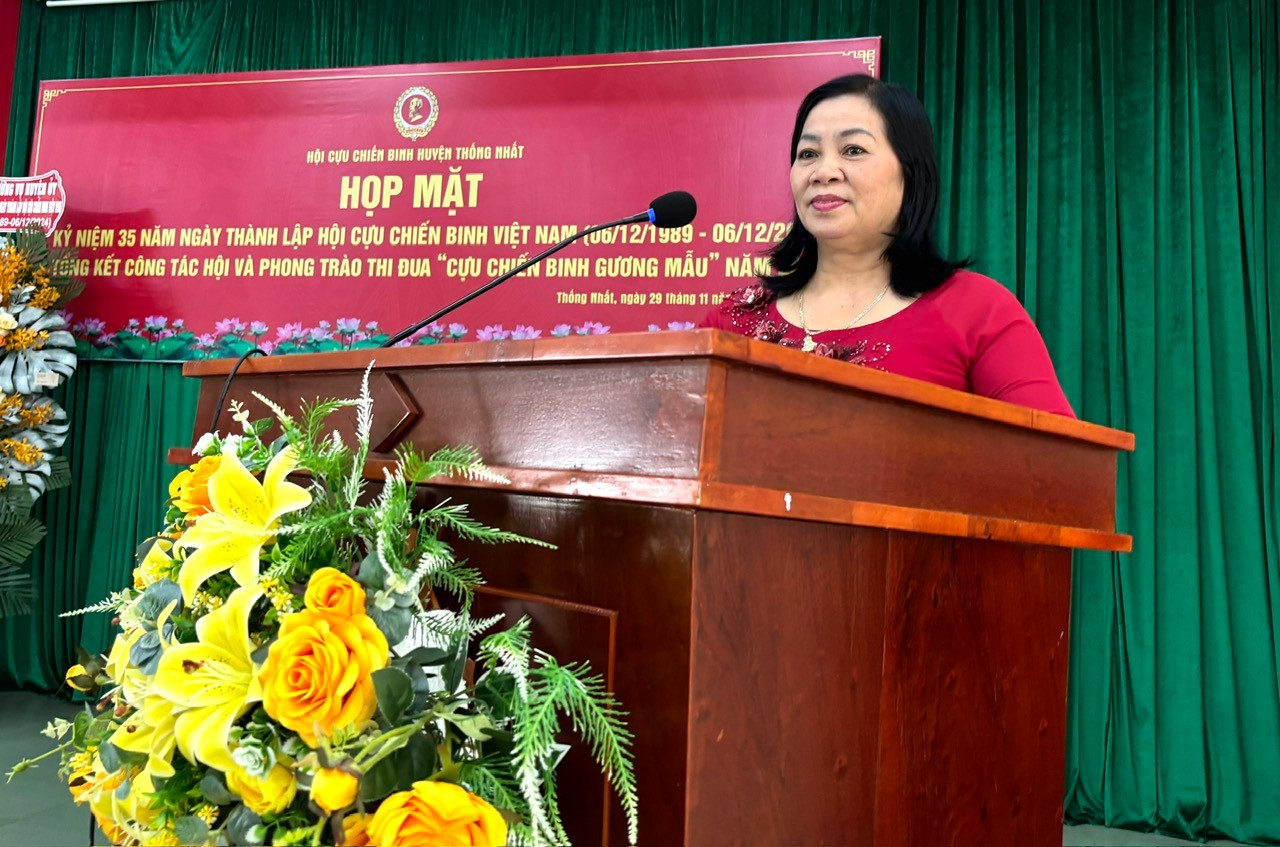 Sáng ngày 29/11/2024, Hội CCB huyện Thống Nhất tổ chức hội nghị gặp mặt truyền thống kỷ niệm 35 năm Ngày thành lập Hội CCB Việt Nam (06/12/1989-06/12/2024). Dự buổi gặp mặt có các đồng chí: Huỳnh Công Phúc, Phó Chủ tịch Hội CCB tỉnh; Vũ Thị Yến, UVTVHU, Trưởng ban Ban Dân vận Huyện ủy và đại diện các ban, ngành; Ban Chỉ huy Quân sự huyện Thống Nhất.