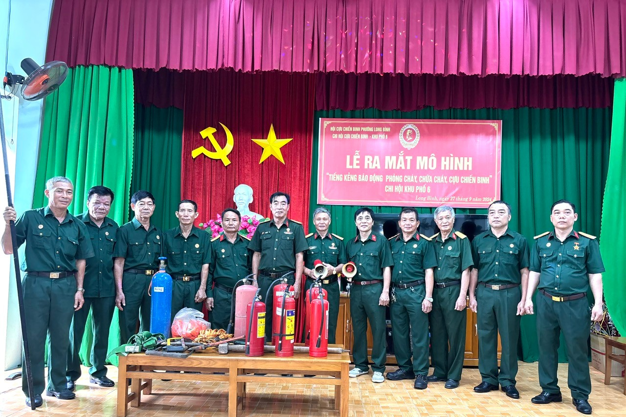 Sáng ngày 27/9/2024, tại Nhà Văn hóa khu phố 6, phường Long Bình; Hội CCB khu phố 6 (phường Long Bình, thành phố Biên Hòa) tổ chức ra mắt tổ Mô hình "Tiếng kẻng báo động PC&CC Hội CCB" khu phố 6, phường Long Bình làm điểm do Hội CCB tỉnh phát động thực hiện; đến dự có các đồng chí: Lưu Thị Hà, Phó Chủ tịch MTTQ Việt Nam tỉnh; Trần Văn Thía, Chủ tịch Hội CCB thành phố Biên Hòa.