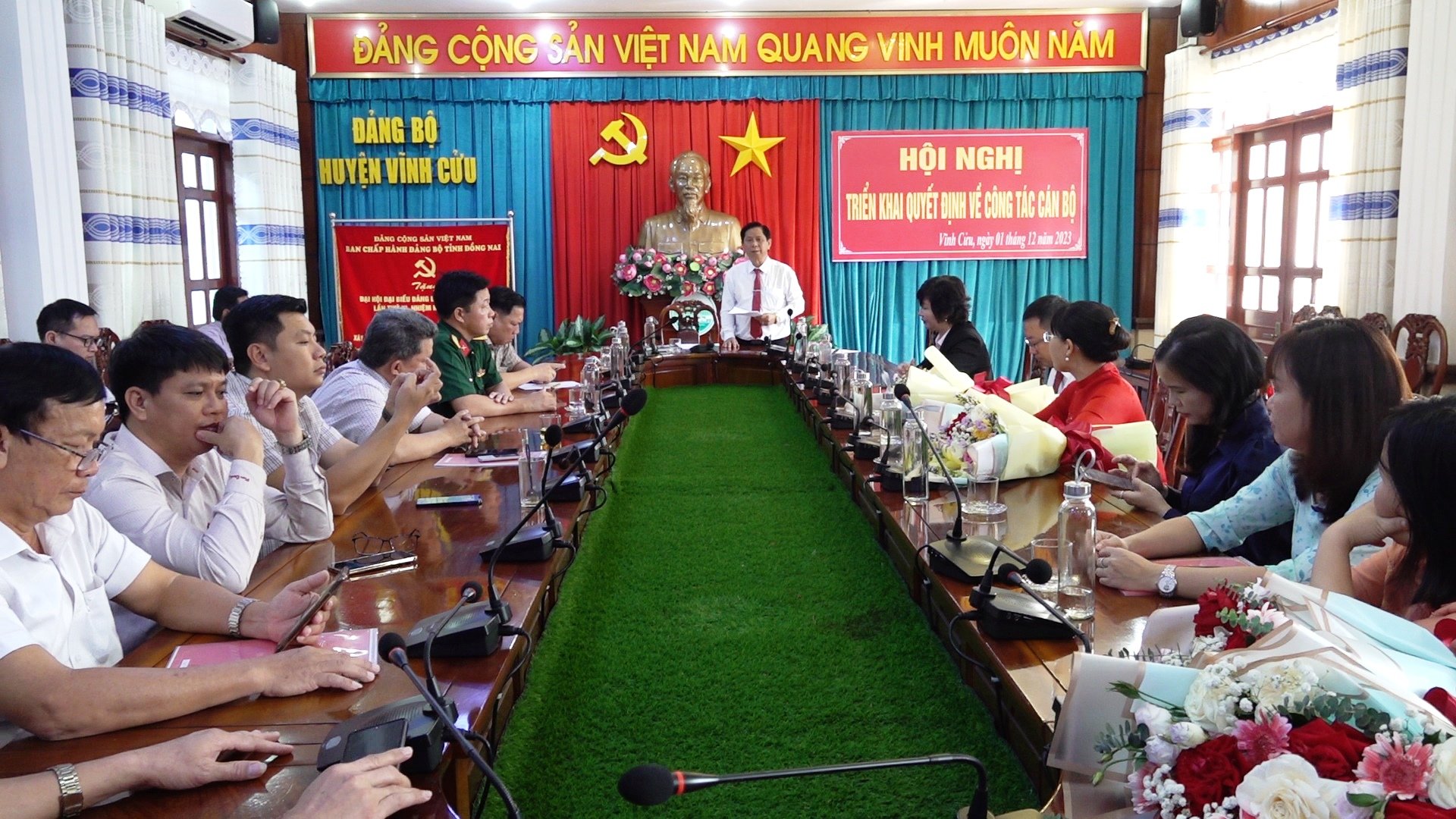 Sáng ngày 01/12, Huyện ủy Vĩnh Cửu tổ chức hội nghị công bố và trao quyết định của Ban Thường vụ Huyện ủy về công tác cán bộ. Đồng chí Nguyễn Tấn Phước - Phó Bí thư Thường trực Huyện ủy chủ trì hội nghị. Tham dự hội nghị có đồng chí Nguyễn Thị Dung- HUV, Phó Chủ tịch UBND huyện, các đồng chí trong Ban Thường vụ Huyện ủy; lãnh đạo các Ban Đảng, Văn phòng Huyện ủy; lãnh đạo Mặt trận Tổ quốc, lãnh đạo Văn phòng HĐND - UBND huyện, lãnh đạo các Phòng Văn hóa - Thông tin, Phòng Nội vụ; lãnh đạo Đảng ủy thị trấn Vĩnh An.