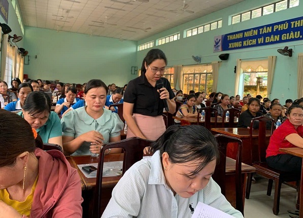 Tham dự đối thoại với không khí dân chủ, sôi nổi, lãnh đạo Hội LHPN tỉnh, Ban Dân tộc tỉnh cùng các ngành chức năng ở địa phương đã được nghe nhiều câu hỏi, ý kiến, đề xuất của cán bộ, hội viên, phụ nữ vùng DTTS và miền núi huyện Tân Phú tập trung vào nhóm vấn đề như: vay vốn phát triển kinh tế gia đình; quan tâm đầu tư xây dựng công trình thủy lợi ở địa phương; mở các lớp đào tạo kỹ thuật chăn nuôi trồng trọt, thành lập các mô hình kinh tế, trong đó, có mô hình tổ hợp tác/hợp tác xã nghề thủ công có hỗ trợ đầu ra cho sản phẩm; quan tâm phủ lưới điện quốc gia; công tác đào tạo, bồi dưỡng cán bộ nữ, các giải pháp thực hiện các chỉ tiêu về cán bộ nữ và chuẩn bị nhân sự cho Đại hội Đảng các cấp trên địa bàn huyện nhiệm kỳ 2025-2030; tổ chức đa dạng các cuộc thi văn hóa văn nghệ - thể dục, thể thao; hỗ trợ kinh phí hoạt động cho câu lạc bộ nhằm giữ gìn văn hóa hát then của dân tộc Tày Nùng; cấp thẻ bảo hiểm y tế cho đồng bào dân tộc, chăm sóc sức khỏe cho phụ nữ, trẻ em; thường xuyên tập huấn, tuyên truyền nâng cao nhận thức về bình đẳng giới, pháp luật hôn nhân gia đình, phòng, chống bạo lực gia đình, việc thực hiện các chính sách đối với đồng bào DTTS ... Sau khi lắng nghe các câu hỏi, kiến nghị cơ bản đã được lãnh đạo Hội LHPN tỉnh; Ban Dân tộc tỉnh; lãnh đạo Huyện ủy; UBND huyện và các ngành chức năng huyện trao đổi, trả lời, giải đáp thắc mắc của các chị hội viên, phụ nữ.