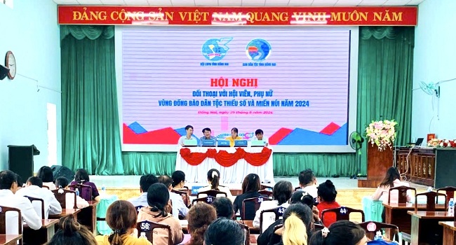 Sáng 29/8/2024, Ban Thường vụ Hội LHPN tỉnh phối hợp với Ban Dân tộc tỉnh tổ chức Hội nghị đối thoại với gần 100 hội viên, phụ nữ là đồng bào DTTS trên địa bàn huyện Tân Phú. Tham dự đối thoại có các đồng chí: Lê Thị Thái - TUV, Chủ tịch Hội LHPN tỉnh; Nguyễn Văn Khang - Trưởng Ban Dân tộc tỉnh; Trịnh Văn Luận - Phó Bí thư Thường trực Huyện ủy - Chủ tịch HĐND huyện; Phạm Ngọc Hưng - HUV - Phó Chủ tịch UBND huyện Tân Phú đồng chủ trì Hội nghị và đại diện lãnh đạo phòng, ban chuyên môn của Huyện ủy, UBND huyện, Ủy ban MTTQ Việt Nam huyện Tân Phú.