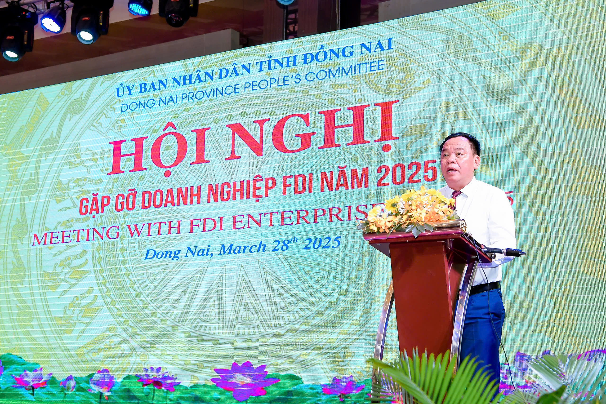 Ngày 28/3/2025, UBND tỉnh Đồng Nai tổ chức Hội nghị gặp gỡ Doanh nghiệp FDI năm 2025. Chủ trì hội nghị có các đồng chí: Võ Tấn Đức, Phó Bí thư Tỉnh ủy, Chủ tịch UBND tỉnh; Dương Minh Dũng, UVTV, Phó Chủ tịch UBND tỉnh; cùng các đồng chí Lãnh đạo các Sở, ngành; lãnh đạo UBND các huyện, thành phố và hơn 350 Doanh nghiệp FDI đang hoạt động sản xuất, kinh doanh trên địa bàn.