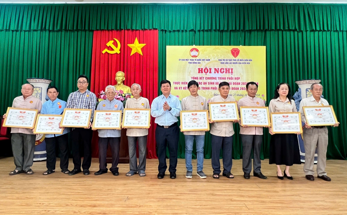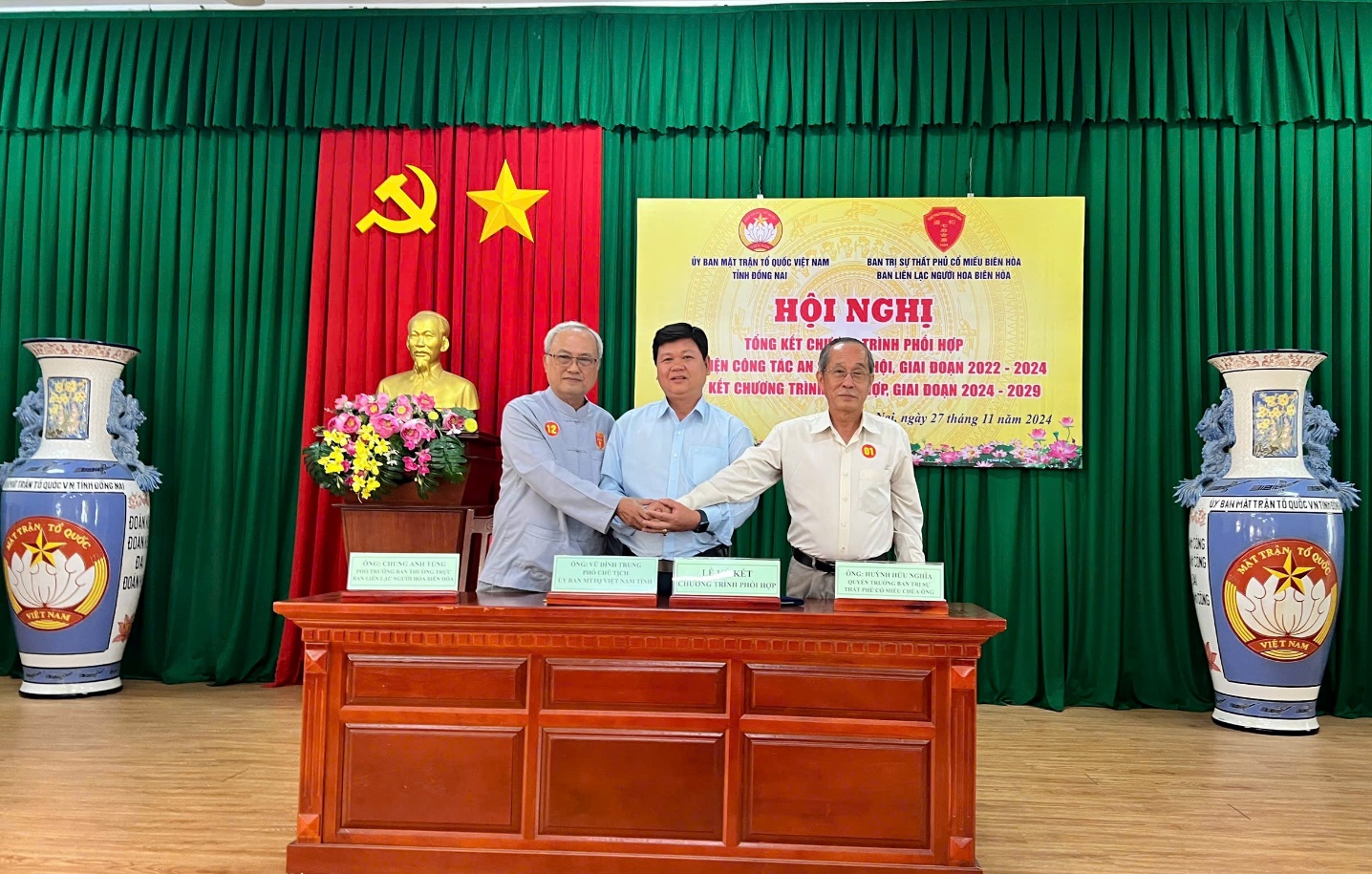 Tại Hội nghị tổng kết giai đoạn 2022-2024, Ban Thường trực Ủy ban MTTQ Việt Nam tỉnh Đồng Nai cùng với Ban Trị sự Thất phủ Cổ Miếu Biên Hòa và Ban Liên lạc người Hoa Biên Hòa thống nhất tiếp tục ký kết Chương trình phối hợp phát huy vai trò của cộng đồng người Hoa tham gia hoạt động ASXH, giai đoạn 2025-2029. Qua đó, tiếp tục phát huy tinh thần đoàn kết, tương trợ giúp đỡ lẫn nhau của cộng đồng người Hoa, góp phần tích cực hưởng ứng Phong trào thi đua “Vì người nghèo - Không để ai bị bỏ lại phía sau” và các chương trình ASXH, giảm nghèo bền vững trên địa bàn tỉnh Đồng Nai trong giai đoạn mới.