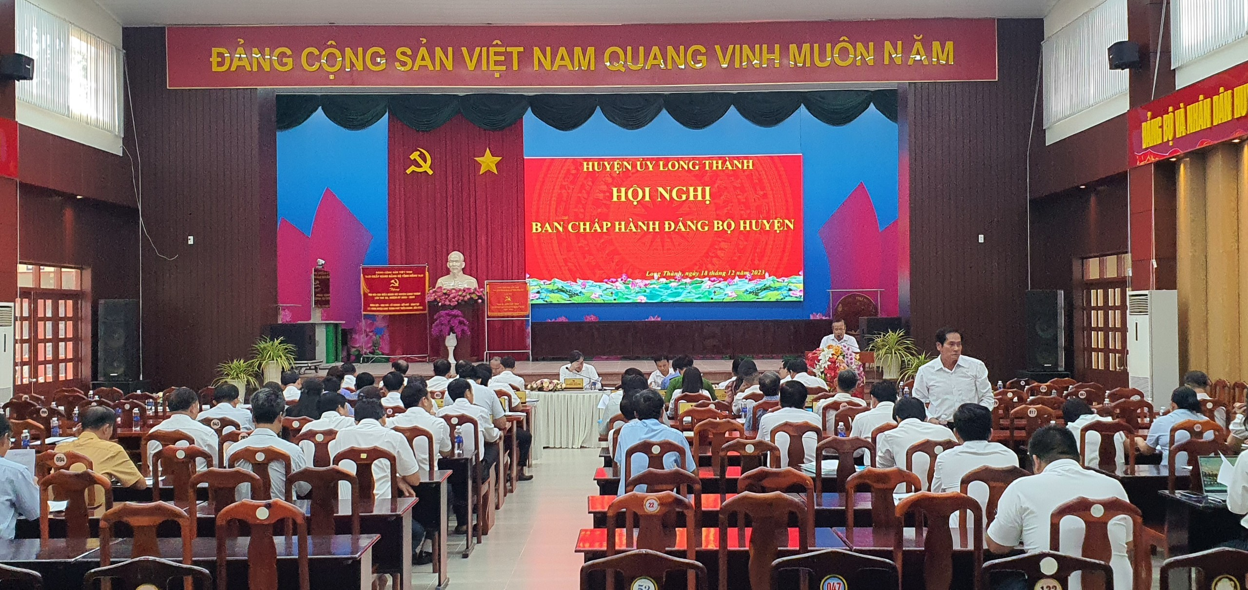 Sáng ngày 18/12, Huyện ủy Long Thành tổ chức Hội nghị Ban Chấp hành Đảng bộ mở rộng lần thứ 17 khóa XII (nhiệm kỳ 2020-2025) nhằm đánh giá kết quả thực hiện mục tiêu nhiệm vụ năm 2023; đề ra nhiệm vụ, giải pháp lãnh đạo năm 2024. Đồng chí Dương Minh Dũng, UVTV Tỉnh ủy, Bí thư Huyện ủy dự và chủ trì hội nghị. Tham dự hội nghị còn có các đồng chí Ủy viên Ban Thường vụ, Ủy viên Ban Chấp hành Đảng bộ huyện, thủ trưởng các cơ quan, ban ngành, đoàn thể huyện, Bí thư, Chủ tịch UBND 14 xã, thị trấn.