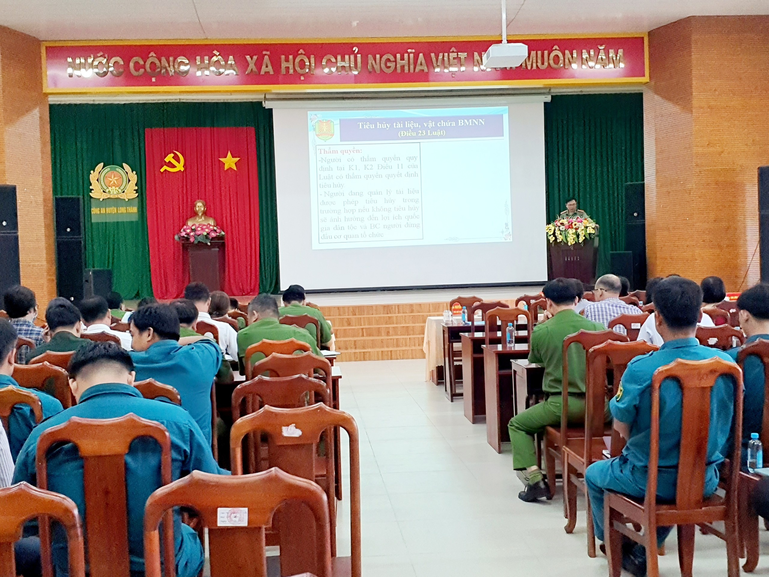 Tại Hội nghị, các đại biểu được nghe đồng chí Thượng tá Lê Chí Hướng, Phó Trưởng Phòng PA03 Công an tỉnh Đồng Nai quán triệt một số vấn đề công tác bảo vệ BMNN trong tình hình hiện nay và đồng chí Thiếu tá Nguyễn Thế Cao - Đội trưởng Đội an ninh dân chính đảng và bảo vệ BMNN thuộc Phòng PA03, Công an tỉnh Đồng Nai triển khai một số nội dung cơ bản của Luật Bảo vệ BMNN và các văn bản hướng dẫn thi hành Luật; công tác quản lý nhà nước về bảo vệ BMNN và công tác phòng ngừa, phát hiện, xử lý các vụ lộ, lọt, mất BMNN.