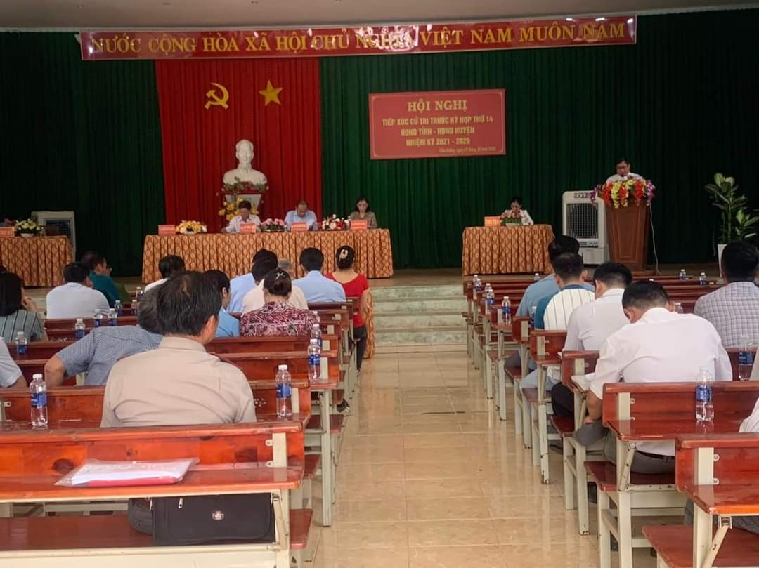 Tại hội nghị, Đại biểu HĐND tỉnh và huyện thông báo về tình hình thực hiện nhiệm vụ kinh tế - xã hội, quốc phòng - an ninh năm 2023 của tỉnh, huyện; kết quả hoạt động năm 2023 của HĐND tỉnh, huyện; nội dung chính thuộc chương trình kỳ họp thứ 14 - Kỳ họp thường lệ cuối năm 2023 của HĐND tỉnh (khóa X) và chương trình kỳ họp thứ 14 - Kỳ họp thường lệ cuối năm 2023 của HĐND huyện (khóa XII); kết quả trả lời kiến nghị của cử tri sau kỳ họp thứ 13 của HĐND tỉnh, HDND huyện.