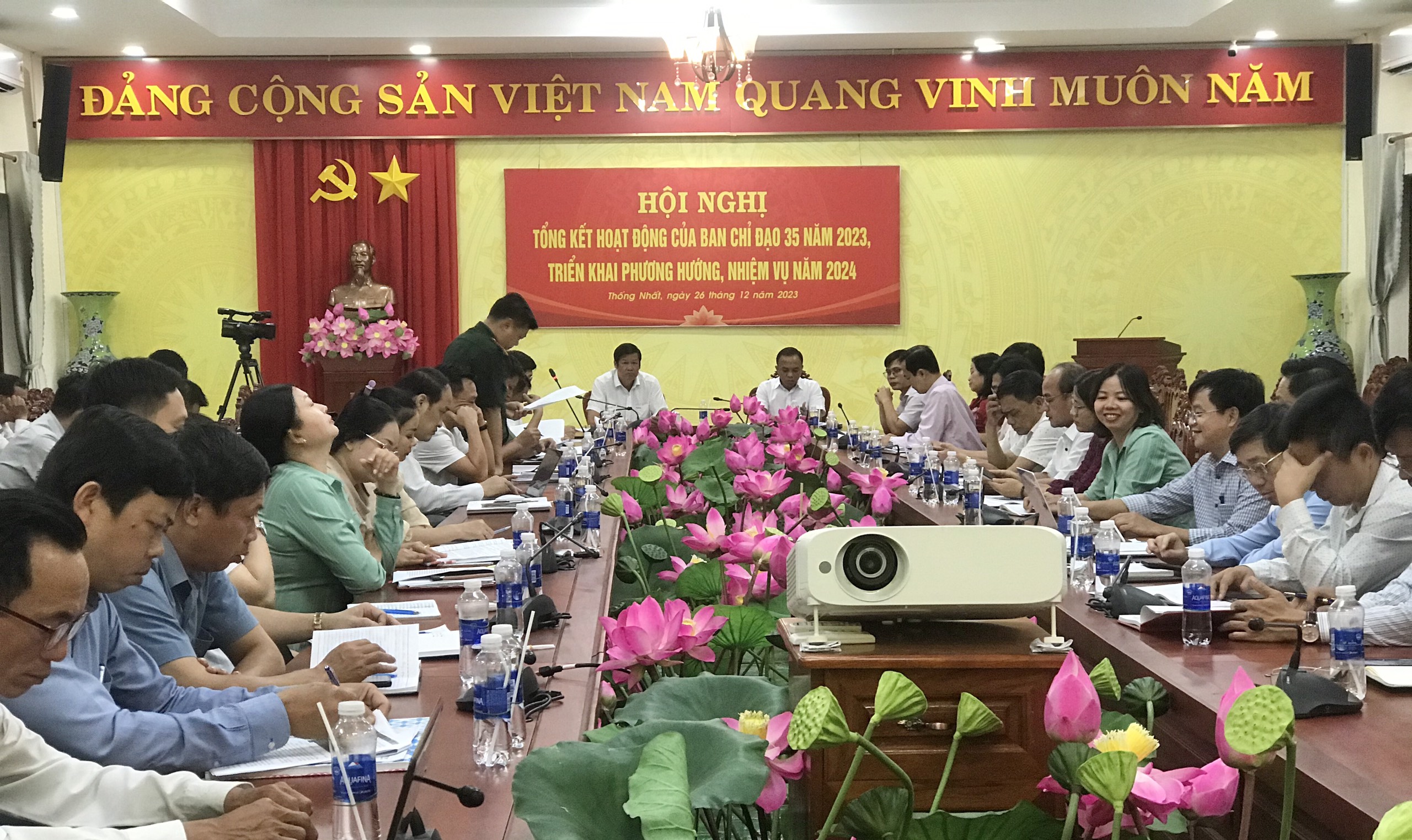 Chiều ngày 26/12/2023, Ban Chỉ đạo 35 (BCĐ 35) Huyện ủy Thống Nhất tổ chức Hội nghị tổng kết thực hiện Nghị quyết số 35-NQ/TW của Bộ Chính trị (khóa XII) năm 2023, triển khai phương hướng, nhiệm vụ năm 2024. Dự và chủ trì hội nghị có các đồng chí: Nguyễn Huy Du - Phó Bí thư Thường trực Huyện ủy, Chủ tịch HĐND huyện – Trưởng BCĐ; Lê Huy Thiêm - UVBTV, Trưởng Ban Tuyên giáo Huyện ủy, Giám đốc Trung tâm Chính trị - Phó trưởng Ban thường trực BCĐ 35 Huyện ủy; đại diện lãnh đạo MTTQ, các tổ chức chính trị - xã hội, Bí thư các chi bộ, đảng bộ cơ sở trực thuộc.
