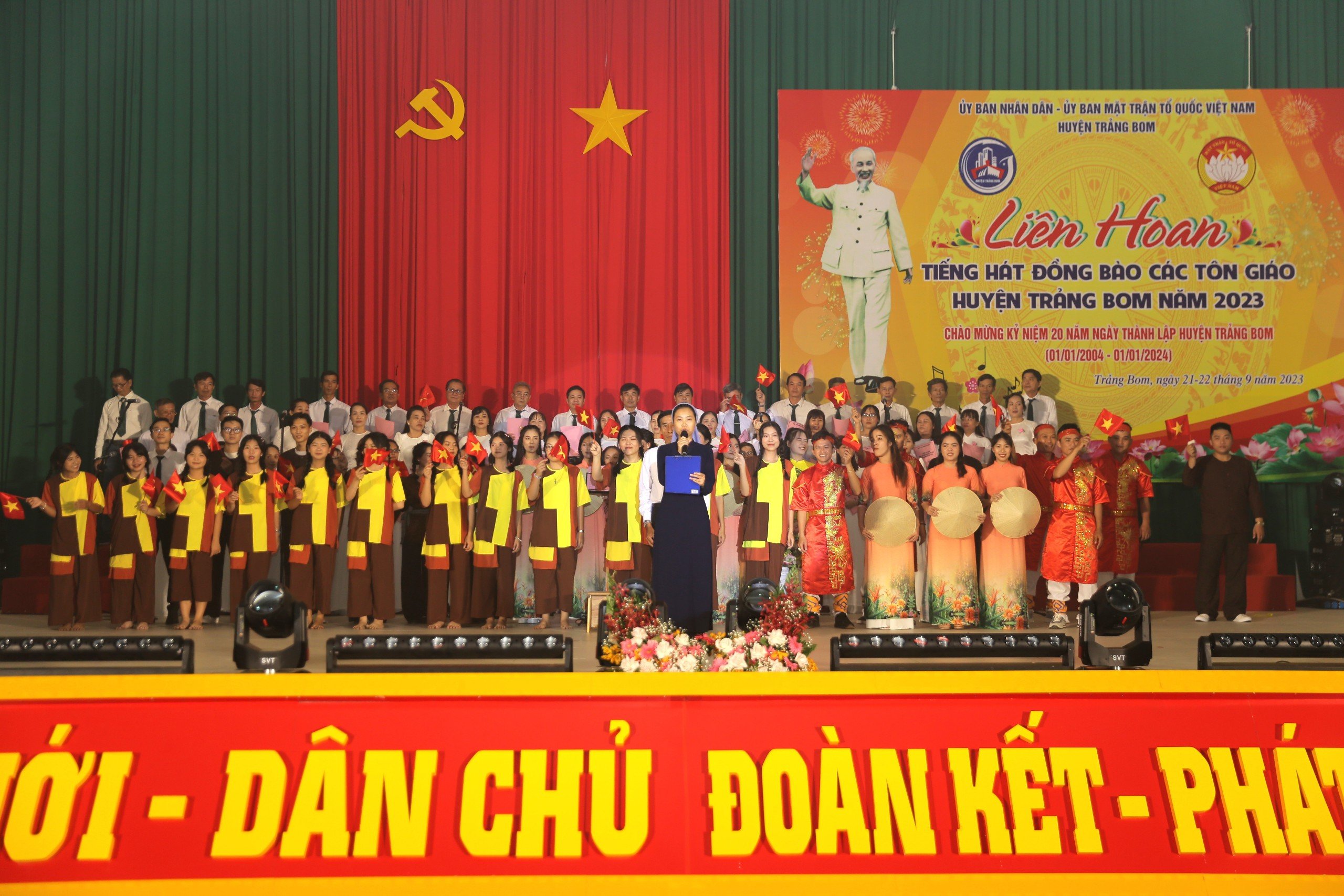 Tối 21/9, huyện Trảng Bom tổ chức “Liên hoan tiếng hát đồng bào các tôn giáo” năm 2023. Đây là hoạt động chào mừng kỷ niệm 20 năm Ngày thành lập huyện Trảng Bom (01/01/2004-01/01/2024).