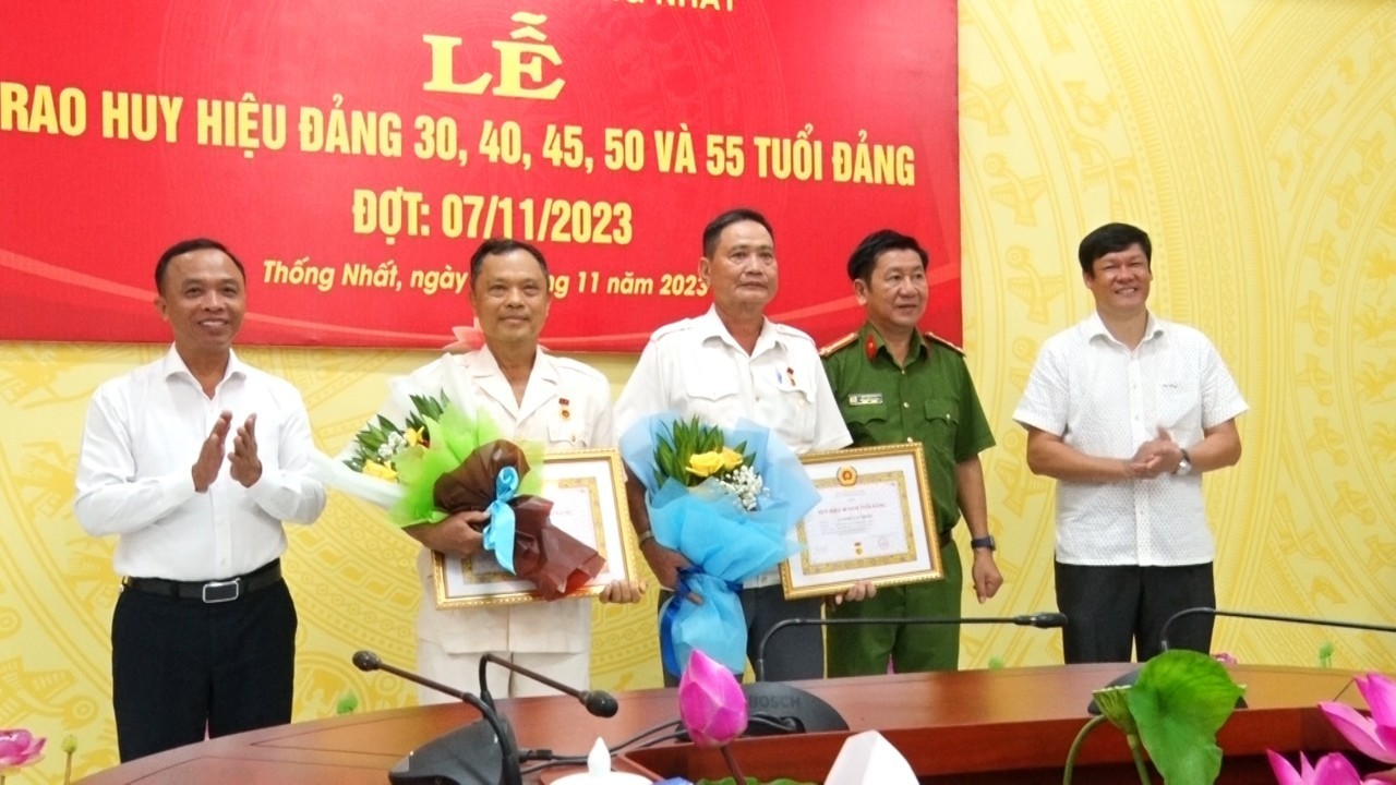 Sáng ngày 14/11, đồng chí Nguyễn Huy Du, Phó Bí thư Thường trực Huyện ủy, Chủ tịch HĐND huyện Thống Nhất chủ trì Lễ trao Huy hiệu 30 năm, 40 năm, 45 năm, 50 năm và 55 năm tuổi Đảng đợt 07/11/2023. Theo đó, trong đợt này Đảng bộ huyện Thống Nhất vinh dự có 10 đảng viên được tặng huy hiệu Đảng, trong đó có 03 đảng viên được tặng huy hiệu 55 tuổi Đảng; 02 đảng viên được tặng huy hiệu 50 năm tuổi Đảng; 01 đảng viên được tặng huy hiệu 45 năm tuổi Đảng; 02 đảng viên được tặng huy hiệu 40 năm tuổi Đảng và 02 đảng viên được tặng huy hiệu 30 năm tuổi Đảng.