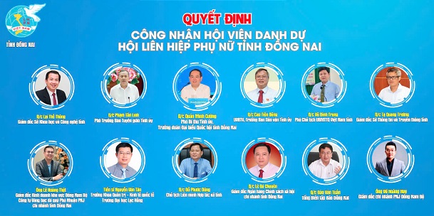 Tại buổi Lễ, Hội LHPN tỉnh đã công bố Quyết định công nhận 12 đồng chí là hội viên danh dự của Hội LHPN Việt Nam cấp tỉnh, bao gồm các đồng chí lãnh đạo: Phó Bí thư Tỉnh ủy, Trưởng đoàn Đại biểu Quốc hội tỉnh; Ban Tuyên giáo; Ban Dân vận Tỉnh ủy; Ủy ban MTTQ Việt Nam tỉnh; Sở Khoa học và Công nghệ; Sở Thông tin và Truyền thông; Báo Đồng Nai; Liên minh Hợp tác xã tỉnh; Ngân hàng Chính sách xã hội tỉnh và các doanh nghiệp đứng chân trên địa bàn tỉnh. Đây đều là những cá nhân có uy tín, tầm ảnh hưởng và có đóng góp, hỗ trợ tích cực cho phong trào phụ nữ và hoạt động của Hội LHPN tỉnh trong thời gian qua.