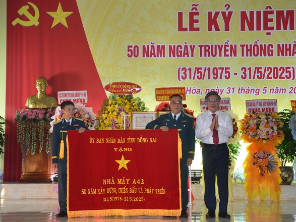 Ngày 31/5/2025, tại Nhà máy A42 thành phố Biên Hòa, Đồng Nai đã tổ chức Lễ kỷ niệm 50 năm Ngày Truyền thống Nhà máy A42 (31/5/1975-31/5/2025). Đến dự có các đồng chí: Thiếu tướng Phạm Tuấn Anh, Phó Tư lệnh Quân chủng Phòng không Không quân (PK-KQ); Trung tướng Lâm Quang Đại, Nguyên Chính ủy Quân chủng PK-KQ; Dương Minh Dũng, Ủy viên Ban Thường vụ Tỉnh ủy, Phó Chủ tịch UBND tỉnh; Lại Thế Thông, Phó Trưởng Ban Tuyên giáo và Dân vận Tỉnh ủy và Thủ trưởng các phòng, ban chức năng Quân chủng PK-KQ; đội ngũ cán bộ, quân nhân chuyên nghiệp, công nhân và viên chức quốc phòng, lao động hợp đồng của Nhà máy A42 qua các thời kỳ.