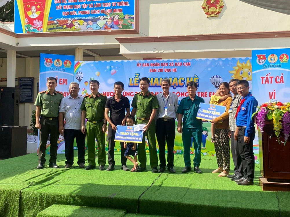 Công an xã Bàu Cạn, huyện Long Thành nhận hỗ trợ cháu Việt Anh