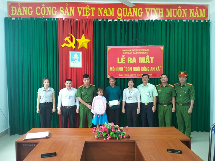 Công an xã Xuân Hưng (huyện Xuân Lộc) đã phối hợp với cấp ủy, chính quyền địa phương tổ chức chương trình nhận "Con nuôi Công an xã" đối với cháu Võ Lê Khánh Vy, sinh năm 2013, nơi ở hiện nay tại ấp 3 (xã Xuân Hưng, huyện Xuân Lộc); hiện cháu đang theo học lớp 4/1 trường tiểu học Triệu Thị Trinh (xã Xuân Hưng), hoàn cảnh cháu đặc biệt khó khăn mẹ cháu bị bệnh bướu toàn thân, bà ngoại già yếu, cha cháu bị bệnh tâm thần và bỏ nhà đi khi cháu còn nhỏ gia đình thuộc hộ nghèo trên địa bàn xã. Công an xã Xuân Hưng trợ cấp cho cháu Khánh Vy 500.000 đồng/tháng; Công an xã Suối Cao (huyện Xuân Lộc) nhận cháu Nguyễn Hoàng Gia Bảo, sinh năm 2015, nơi ở hiện nay ấp Gia Lào (xã Suối Cao), cháu đang học lớp 4B trường tiểu học Lam Sơn (xã Suối Cao, huyện Xuân Lộc), hoàn cảnh cháu Gia Bảo sinh ra trong gia đình thiếu thốn về tình cảm của cha, mẹ cháu bị bệnh nặng sau khi bố bỏ đi, khi cháu gần 01 tuổi cháu bị hưởng về hệ thần kinh; hiện cháu không còn khả năng tự đi lại, mẹ cháu là lao động tự do; mỗi tháng Công an xã Suối Cao trợ cấp cho cháu 500.000 đồng/tháng.