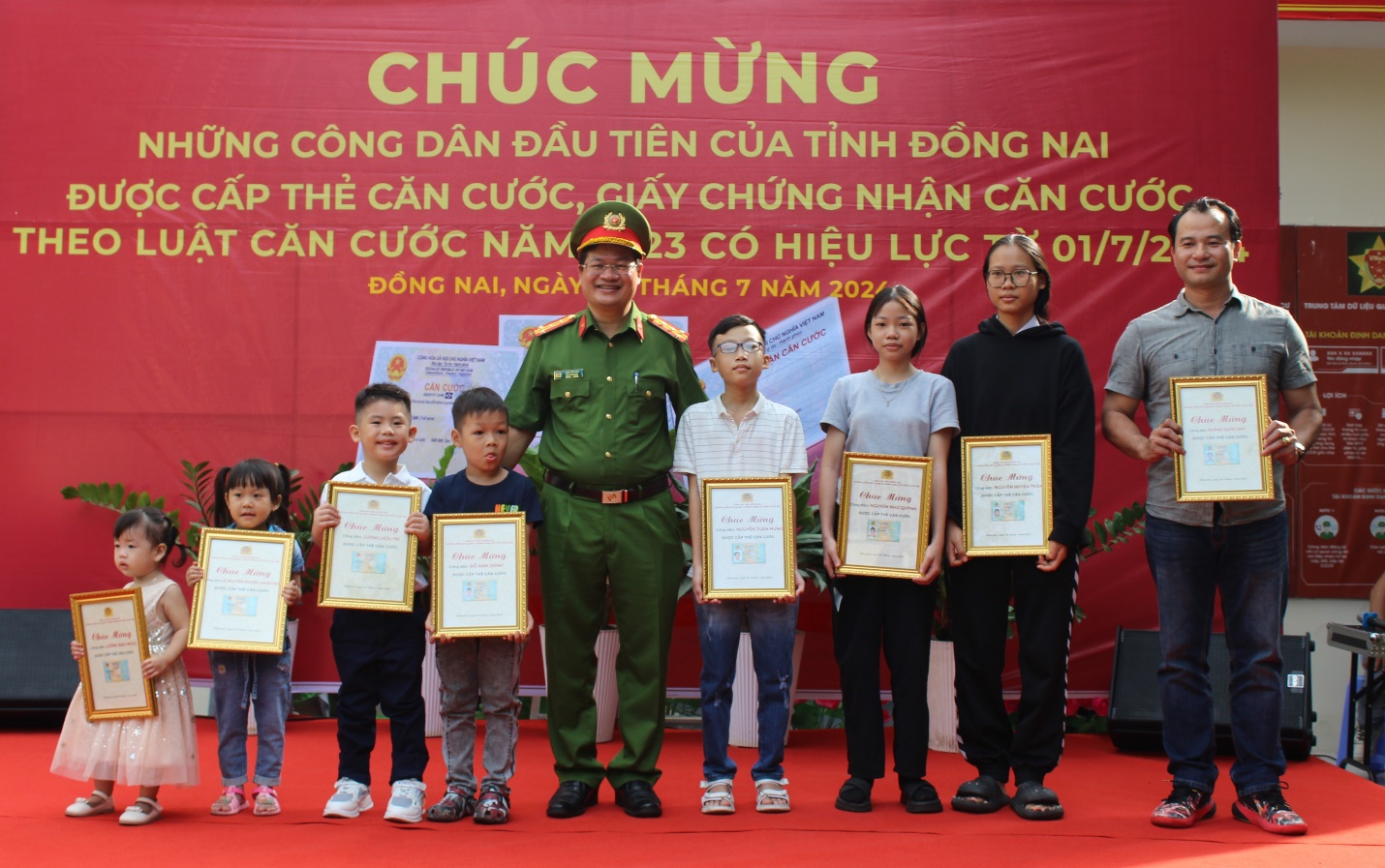 Để kịp thời giới thiệu thẻ căn cước và các tiện ích của thẻ đến người dân, sáng ngày 08/7 đồng loạt tại bộ phận một cửa Phòng Cảnh sát QLHC về TTXH - Công an tỉnh Đồng Nai và Công an 11 huyện, thành phố trực thuộc Công an tỉnh Đồng Nai tổ chức trao Thẻ Căn cước cho những công dân đầu tiên được nhận Thẻ Căn cước mẫu mới.