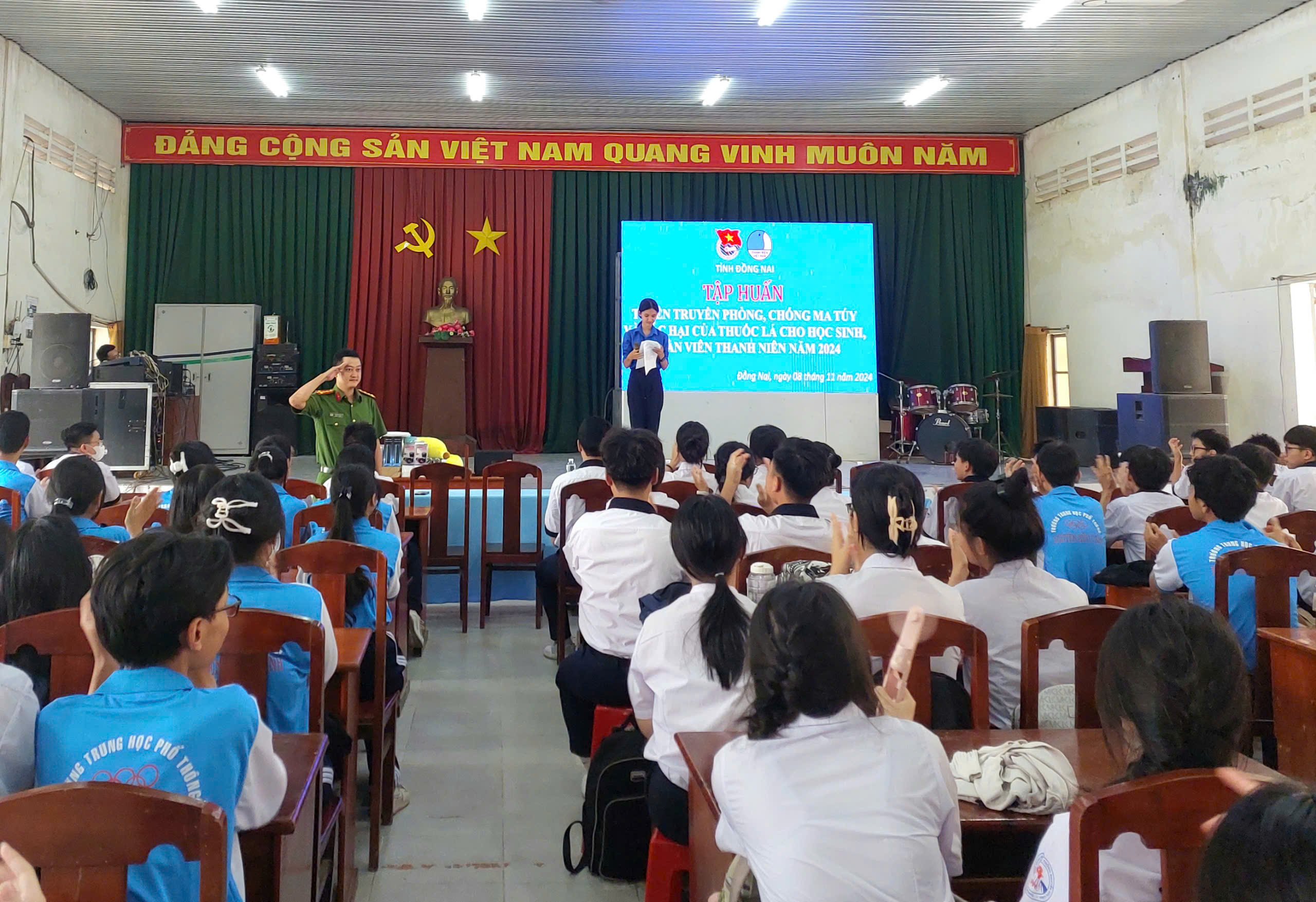 Chiều ngày 08/11/2024 tại trường THPT Nguyễn Hữu Cảnh (thành phố Biên Hòa), Ban Thường vụ Tỉnh đoàn đã tổ chức lớp tập huấn P,CMT và tác hại của thuốc lá, TLĐT cho hơn 300 ĐVTN, HS. Tại lớp tập huấn, ĐVTN, HS được tìm hiểu về tác hại của ma túy, TLĐT; những dạng “ma túy núp bóng”; những “chiêu trò” lôi kéo, dụ dỗ học sinh sử dụng ma túy, TLĐT, cũng như những cách phòng tránh do Báo cáo viên Phạm Tuấn Anh, Cán bộ Phòng Cảnh sát điều tra tội phạm về ma túy, Công an tỉnh Đồng Nai chia sẻ.