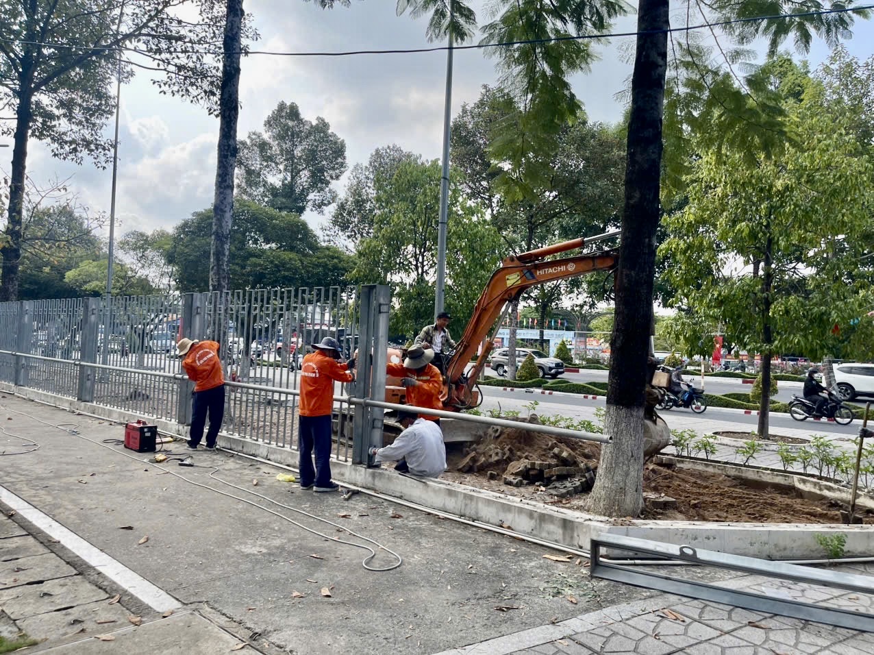 Công nhân đang tháo gỡ hàng rào phía trước