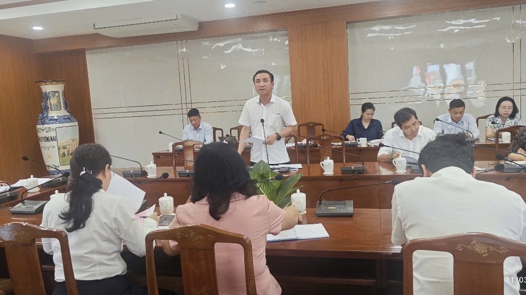 Đ/c Nguyễn Xuân Cường, Phó Chánh Văn phòng Tỉnh ủy báo cáo