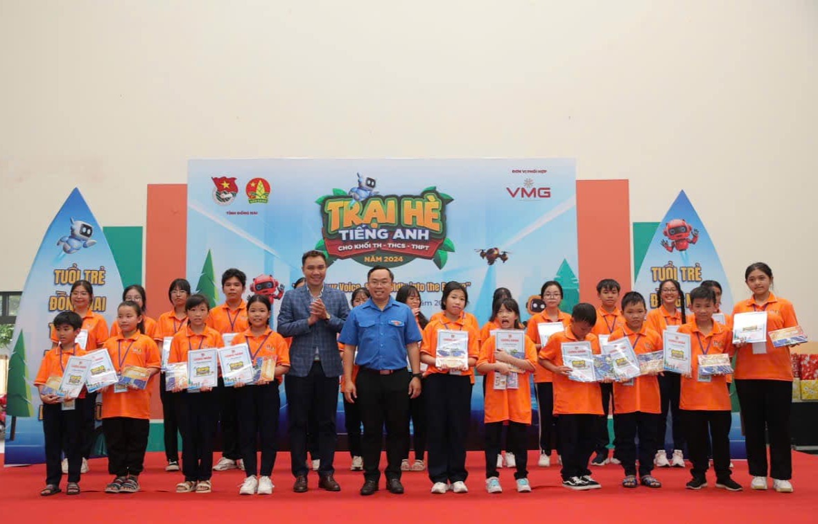 Sáng ngày 16/8/2024, tại Nhà Thiếu nhi tỉnh Đồng Nai, Ban Thường vụ Tỉnh đoàn phối hợp với Trung tâm Anh ngữ Việt Mỹ (VMG) tổ chức chương trình Trại hè tiếng Anh dành cho học sinh khối TH, THCS và THPT năm 2024 với chủ đề “Raise Your Voice, Step Boldly into the Future” với sự góp mặt của 94 trại sinh là các em học sinh khối TH, THCS và THPT trên địa bàn tỉnh.