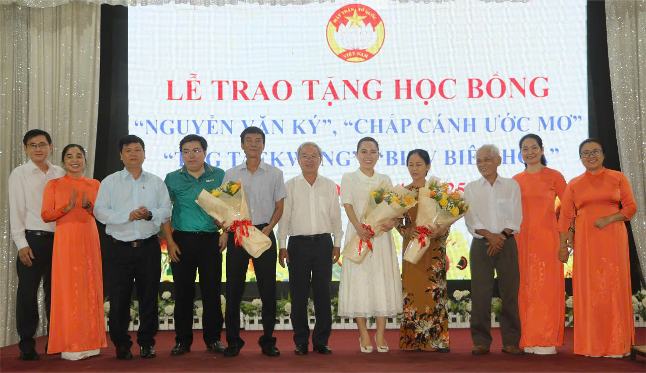 Nhân dịp năm học 2024-2025, Ban Thường trực Ủy ban MTTQ Việt Nam tỉnh Đồng Nai cùng đại diện các nhà tài trợ đã trao tặng 209 suất học bổng cho các em HS,SV trên địa bàn tỉnh, với tổng số tiền hơn 1,0 tỷ đồng (trong đó: 101 suất học bổng “Nguyễn Văn Ký” với số tiền 401 triệu đồng; 68 suất học bổng “Chắp cánh ước mơ” với số tiền 595 triệu đồng; 25 suất học bổng “TKG Taekwang” với số tiền 50 triệu đồng và 15 suất học bổng “BIDV Biên Hòa” với số tiền 30 triệu đồng.