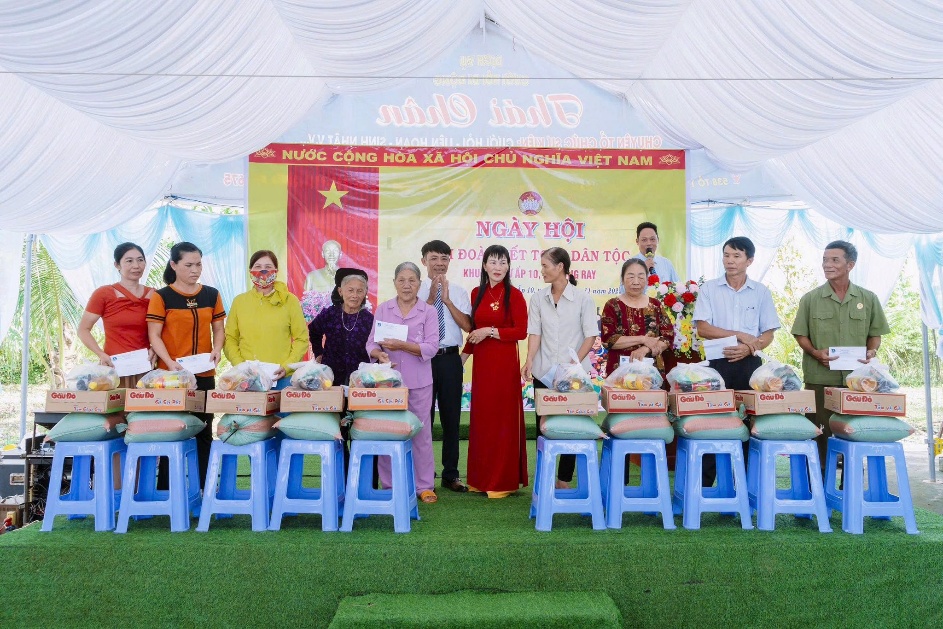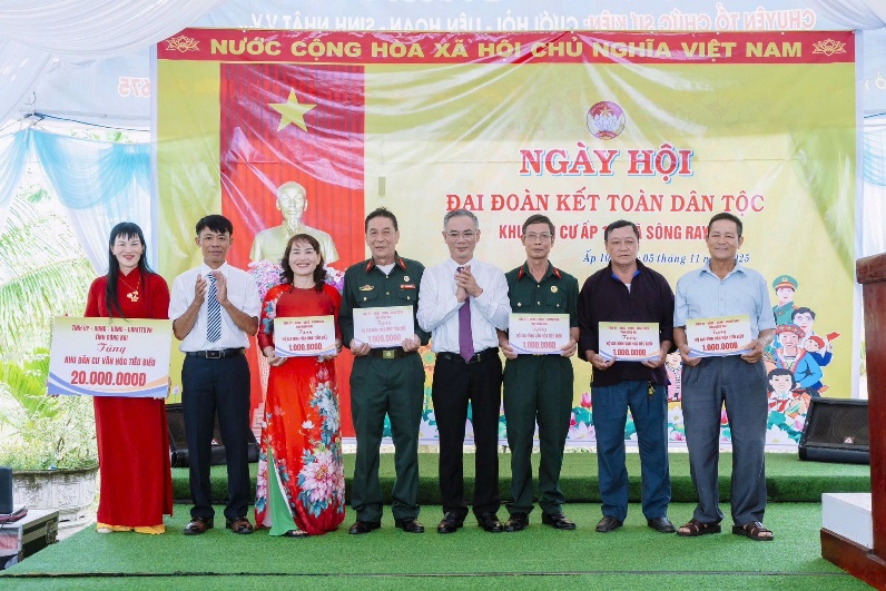 Dịp này, UBND xã Sông Ray đã công bố Quyết định công nhận ấp 10 giữ vững danh hiệu “Ấp văn hóa” năm 2025; trao Giấy khen của UBND xã và Ủy ban MTTQ Việt Nam xã cho các tập thể, cá nhân tiêu biểu có nhiều đóng góp trong công tác Mặt trận và các phong trào thi đua yêu nước. Bên cạnh đó, xã cũng trao tặng nhiều phần quà ý nghĩa cho các hộ gia đình có hoàn cảnh khó khăn, thể hiện tinh thần “Tương thân tương ái”, gắn kết cộng đồng.