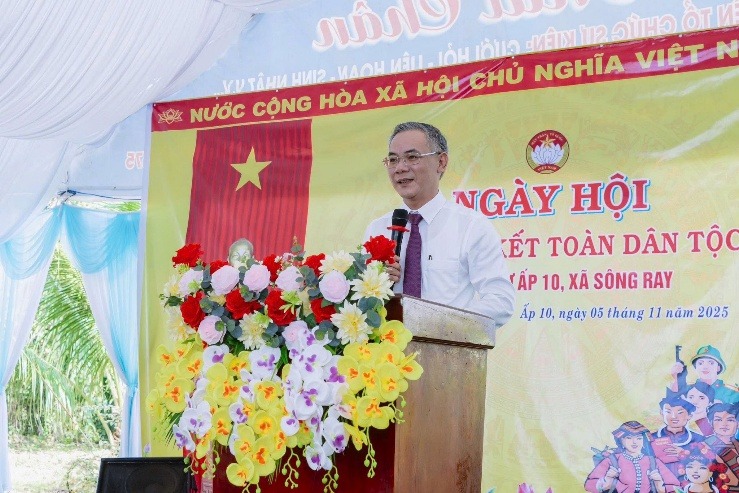 Sáng ngày 5-11, tại Nhà văn hóa ấp 10, xã Sông Ray đã long trọng diễn ra Ngày hội Đại đoàn kết toàn dân tộc, hướng tới kỷ niệm 95 năm Ngày thành lập Mặt trận Dân tộc thống nhất Việt Nam – Ngày truyền thống Mặt trận Tổ quốc Việt Nam (18/11/1930 – 18/11/2025).