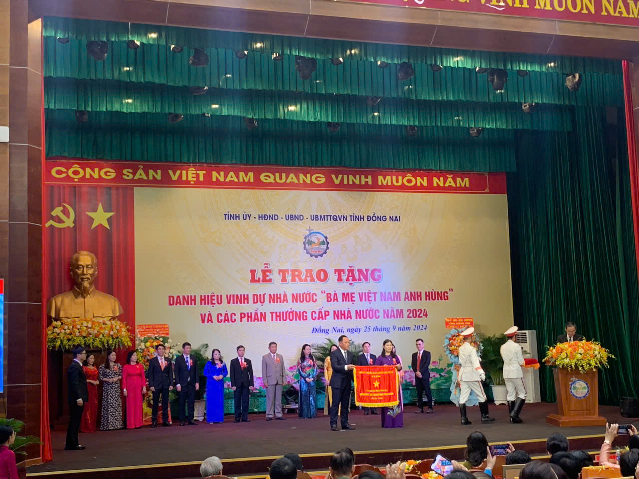 Sáng ngày 25-9-2024, Tỉnh ủy, Hội đồng nhân dân, Ủy ban nhân dân tỉnh, Ủy ban Mặt trận Tổ quốc Việt Nam tỉnh Đồng Nai tổ chức Lễ trao tặng danh hiệu vinh dự Nhà nước “Bà mẹ Việt Nam anh hùng” cho thân nhân 03 mẹ; danh hiệu Nhà giáo ưu tú cho 12 cá nhân; Huân chương lao động cho 21 tập thể, cá nhân; Huân chương Bảo vệ Tổ quốc cho 13 cá nhân; Cờ thi đua Chính phủ cho 13 tập thể và Bằng khen của Thủ tướng Chính phủ cho 117 cá nhân; trong đó, Ban Dân vận Tỉnh ủy vinh dự được nhận Cờ thi đua xuất sắc của Chính phủ vì có thành tích xuất sắc trong phong trào thi đua yêu nước.