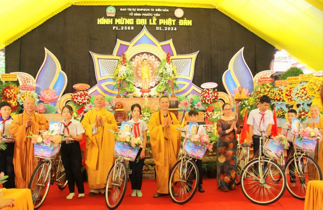Dịp này, Ban Trị sự GHPGVN thành phố Biên Hòa đã trao tặng 50 chiếc xe đạp đến các học sinh có hoàn cảnh khó khăn trên địa bàn thành phố; Tổ đình Phước Viên ủng hộ 10 triệu đồng đến Quỹ vì người nghèo của Ủy ban MTTQVN phường Tân Hiệp, thành phố Biên Hòa.
