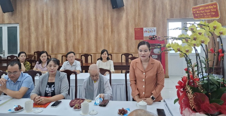 Đáp lời, đồng chí Nguyễn Thị Hồng Trang, Phó Trưởng ban phụ trách Ban Tuyên giáo và Dân vận Tỉnh ủy trân trọng cảm ơn tình cảm và những lời chúc mừng ý nghĩa của Ban Trị sự Giáo hội Phật giáo Việt Nam tỉnh Đồng Nai. Đồng chí ghi nhận những đóng góp tích cực của Giáo hội và tăng, ni, phật tử đối với các phong trào thi đua yêu nước, nhất là trong công tác dân vận, xây dựng khối đại đoàn kết toàn dân tộc. Đồng chí nhấn mạnh: “Trong 95 năm qua, công tác dân vận luôn giữ vai trò đặc biệt quan trọng trong mọi thắng lợi của cách mạng Việt Nam. Đảng bộ Đồng Nai luôn coi trọng và phát huy sức mạnh của khối đại đoàn kết toàn dân, trong đó có sự đóng góp tích cực của các tổ chức tôn giáo. Chúng tôi mong muốn Giáo hội Phật giáo Việt Nam tỉnh tiếp tục phát huy tinh thần đồng hành cùng dân tộc, cùng lan tỏa các giá trị nhân văn, từ bi, bác ái trong đời sống xã hội, góp phần xây dựng Đồng Nai ngày càng phát triển bền vững.”