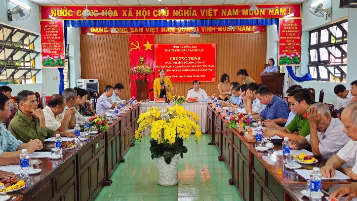 Đoàn công tác do đồng chí Lê Thị Thái – Tỉnh ủy viên, Phó Trưởng Ban Tuyên giáo và Dân vận Tỉnh ủy làm Trưởng đoàn và cùng đi có các đồng chí lãnh đạo các phòng và cán bộ công chức thuộc ban. Tiếp và làm việc với Đoàn có đồng chí Trịnh Tiến Tâm – Bí thư Đảng ủy, Chủ tịch HĐND xã Hưng Phước, cùng đại diện lãnh đạo HĐND, UBND, Ủy ban MTTQ Việt Nam xã, các chức sắc tôn giáo, già làng, người có uy tín trên địa bàn xã.