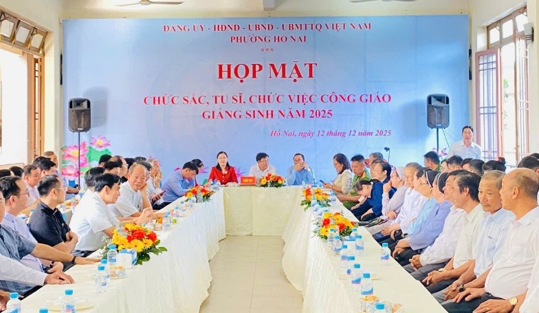 Ngày 12-12, Đảng ủy, HĐND, UBND và Ủy ban MTTQ Việt Nam phường Hố Nai tổ chức buổi họp mặt chức sắc, tu sĩ và chức việc Công giáo trên địa bàn nhân dịp lễ Giáng sinh năm 2025, nhằm thắt chặt mối quan hệ giữa chính quyền và đồng bào Công giáo, củng cố khối đại đoàn kết toàn dân.