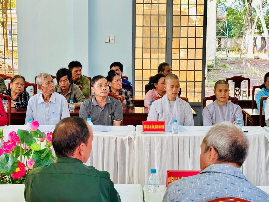Ngay sau chương trình trao quà, Đoàn công tác đã có buổi gặp gỡ, trao đổi với già làng, người có uy tín và chức sắc tôn giáo trên địa bàn. Tại đây, đồng chí Lê Thị Thái đã thông tin một số nhiệm vụ trọng tâm trong công tác tuyên giáo, dân vận của tỉnh thời gian tới; đồng thời lắng nghe, ghi nhận ý kiến, kiến nghị của lãnh đạo xã và đội ngũ người có uy tín liên quan đến đời sống Nhân dân, cũng như công tác dân tộc – tôn giáo tại cơ sở.