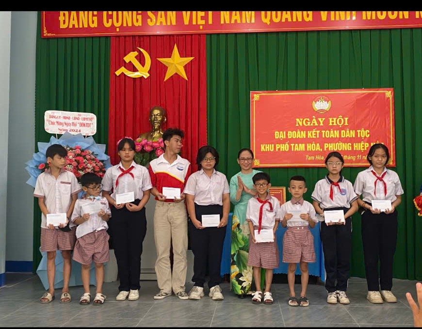 Chủ tịch UBMT Tổ quốc Việt Nam thành phố Biên Hòa trao học bổng cho các em học sinh có hoàn cảnh khó khăn, hiếu học