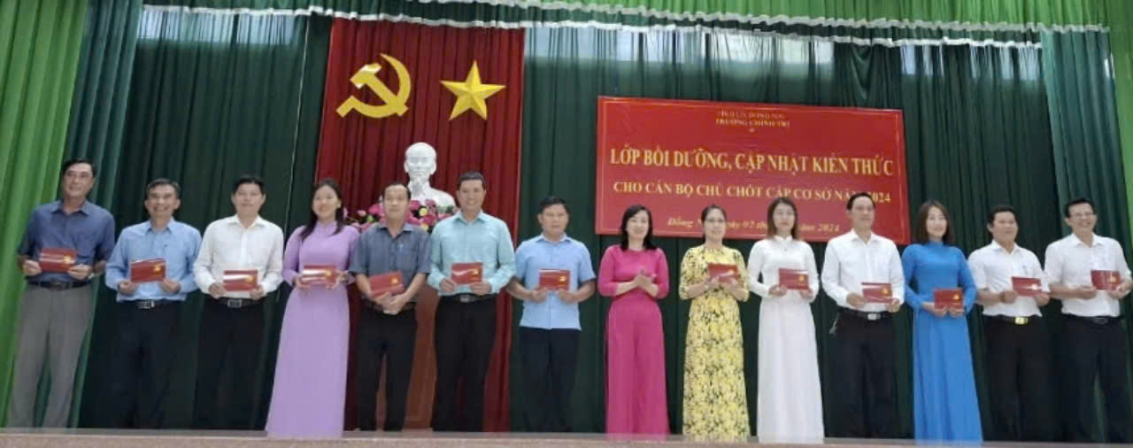 Thực hiện Đề án số 05-ĐA/TU, ngày 29/12/2023 của Ban Thường vụ Tỉnh ủy về bồi dưỡng, cập nhật kiến thức cho cán bộ chủ chốt cấp cơ sở đủ phẩm chất, năng lực và uy tín ngang tầm nhiệm vụ giai đoạn 2023-2025 và những năm tiếp theo; chiều ngày 02/11/2024, Trường Chính trị tỉnh Đồng Nai tổ chức Lễ Bế giảng Lớp bồi dưỡng, cập nhật kiến thức cho cán bộ chủ chốt cấp cơ sở (Lớp thứ ba) năm 2024.