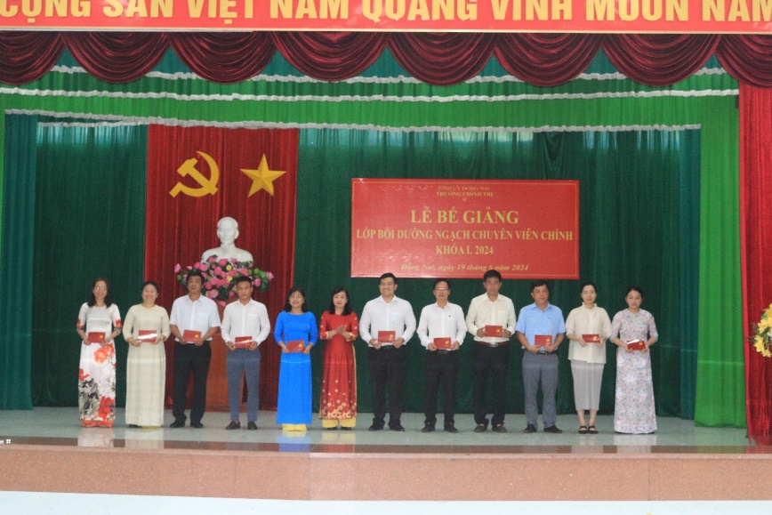 Hiệu trưởng Trường Chính trị tỉnh trao giấy khen cho các đồng chí học viên có thành tích học tập xuất sắc