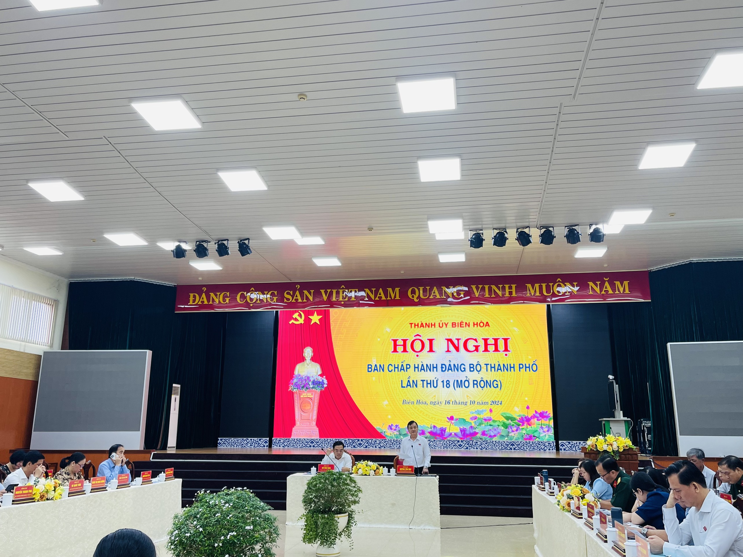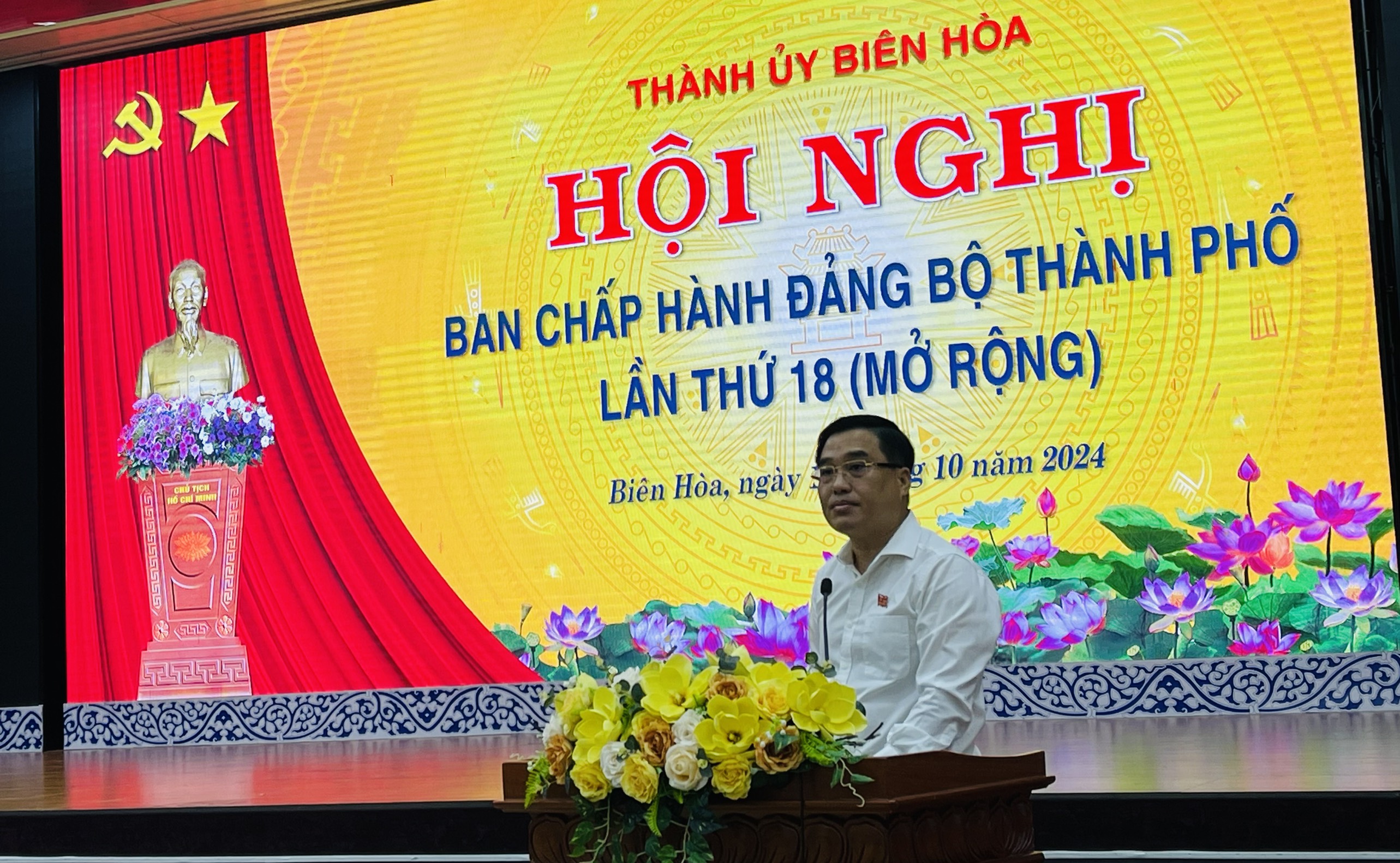 Ngày 16/10/2024, tại Hội trường Thành ủy, Đảng bộ thành phố Biên Hòa tổ chức Hội nghị Ban Chấp hành (BCH) Đảng bộ thành phố lần thứ 18 (khóa XII) năm 2024. Tham dự hội nghị có các đồng chí lãnh đạo các ban đảng Tỉnh ủy; đồng chí Hồ Văn Nam, Ủy viên Ban Thường vụ Tỉnh ủy, Bí thư Thành ủy Biên Hòa; đồng chí Huỳnh Tấn Đạt, Phó Bí thư Thường trực Thành ủy, Chủ tịch HĐND thành phố; các đồng chí Ban Thường vụ, BCH Đảng bộ thành phố; lãnh đạo các ban, ngành, đoàn thể thành phố; lãnh đạo các phường, xã.