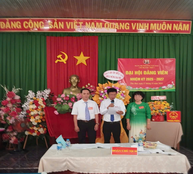 Sáng ngày 17/112024, được sự chấp thuận của Ban Thường vụ Đảng ủy phường Tâm Mai, chi bộ Khu phố 7 long trọng tổ chức Đại hội Chi bộ nhiệm kỳ 2025 - 2027 tại văn phòng khu phố 7 phường Tân Mai. Tham dự và chỉ đạo Đại hội có đồng chí Nguyễn Thị Hạnh, Bí thư Đảng ủy; đồng chí Nguyễn Khắc Hùng, UVTV, Chủ nhiệm UBKT Đảng ủy, các đồng chí trong Ban Chấp hành Đảng bộ cùng 52 đảng viên về tham dự Đại hội.