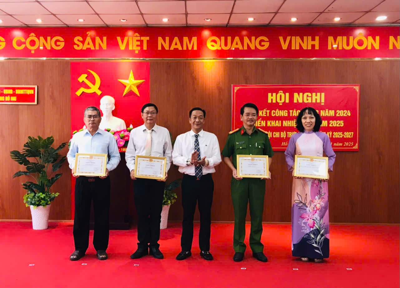 Đồng chí Vũ Văn Chiêu CT.UBND phường Hố Nai trao giấy khen cho các cá nhân HTXSNV năm 2024.