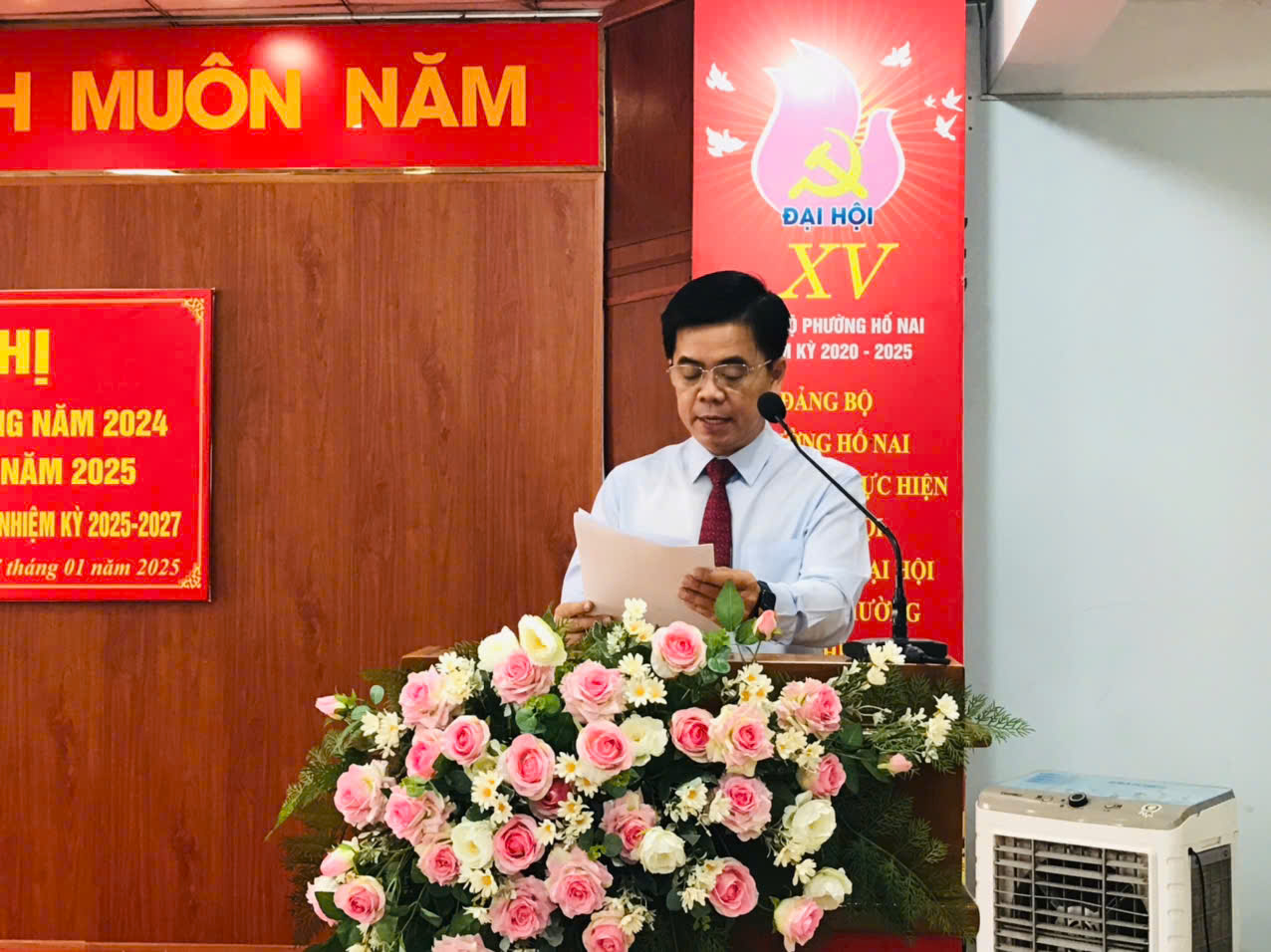 Tại hội nghị đồng chí Trần Thiện Căn Bí thư Đảng ủy phường đã nêu rõ nhiệm vụ cụ thể của Đảng ủy, HĐND, UBND, UBMTTQ và các ban ngành, đoàn thể cần thực hiện trong thời gian tới. Nhất là việc tập trung giải quyết các nhiệm vụ trước, trong và sau Tết Nguyên Đán Ất Tỵ năm 2025. Đồng chí Trần Thiện Căn đã ghi nhận và đánh giá cao những kết quả đã đạt được trong năm 2024 của đảng bộ phường Hố Nai, đồng thời, cũng đã chỉ đạo đảng bộ phường phải đề ra giải pháp khắc phục hạn chế trong năm 2024. Chú ý việc đảm bảo tốt an ninh chính trị, trật tự an toàn xã hội dịp lễ Tết, tiếp tục thực hiện công tác giữ gìn trật tự đô thị, trật tự xây dựng, vệ sinh môi trường, nên tăng cường tuyên truyền vận động, xây dựng và nhân rộng nhiều mô hình mới, hoạt động hiệu quả để hưởng ứng đề án nâng cao chất lượng cuộc vận động xây dựng nếp sống văn hóa- văn minh đô thị.