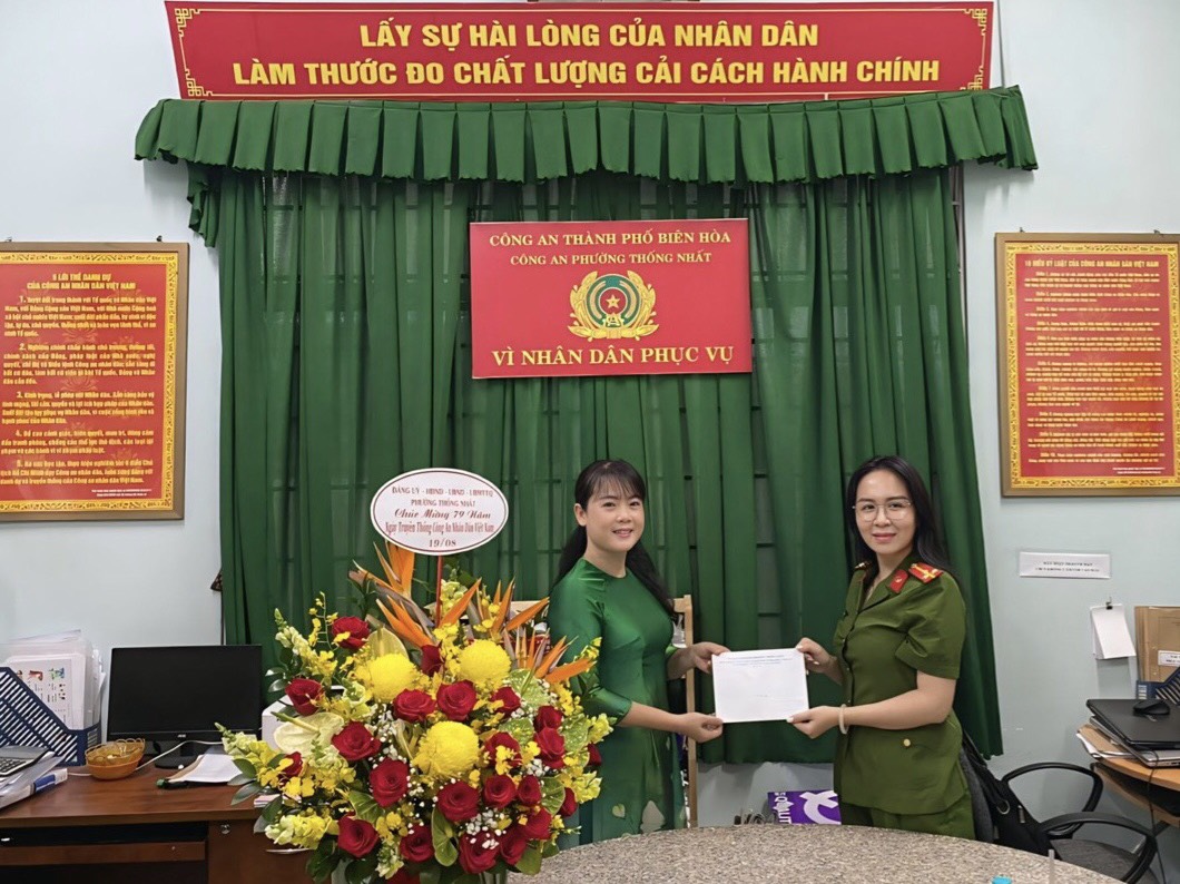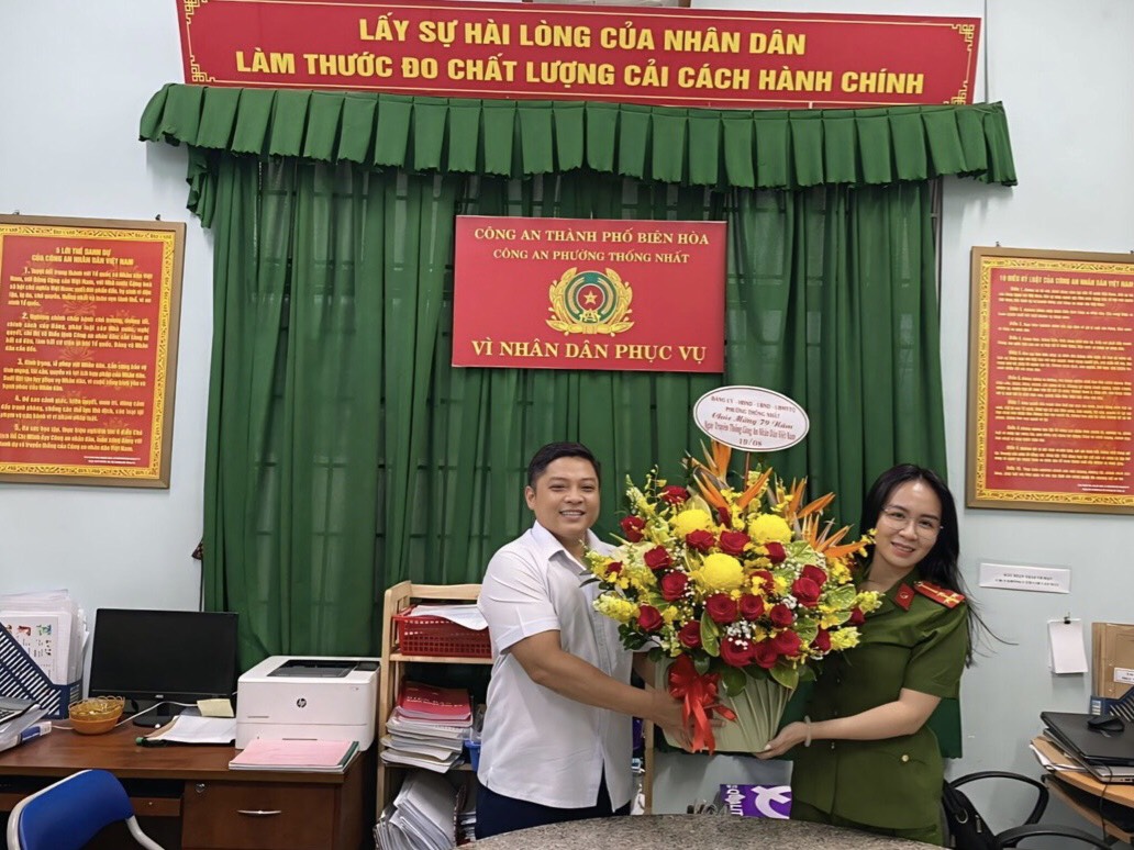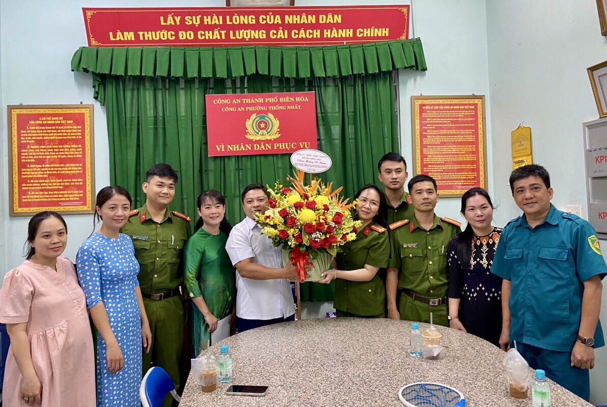 Nhân kỷ niệm 79 năm Ngày truyền thống lực lượng Công an Nhân dân (19/8/1945-19/8/2024), Sáng ngày 19/8, lãnh đạo Đảng ủy, Hội đồng nhân dân, Ủy ban nhân dân, Ủy ban Mặt trận Tổ quốc phường Thống Nhất đã đến tặng hoa chúc mừng cán bộ, chiến sĩ Công an phường.